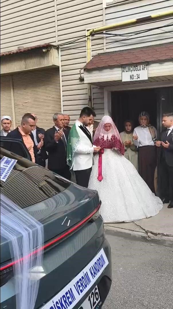 Gelin, babasının evinden yerli sedan ile alınırken, damat Emre Tuncer’ı kutlamak için akrabaları ve yakınları bir araya geldi. Düğün sırasında, misafirler sık sık TOGG T10F modelinin yanında fotoğraf çektirerek bu anı ölümsüzleştirdi. Ayrıca, vatandaşlar yerli otomobili merakla inceleyerek, yerli üretime destek verdiklerini bir kez daha gösterdiler.
