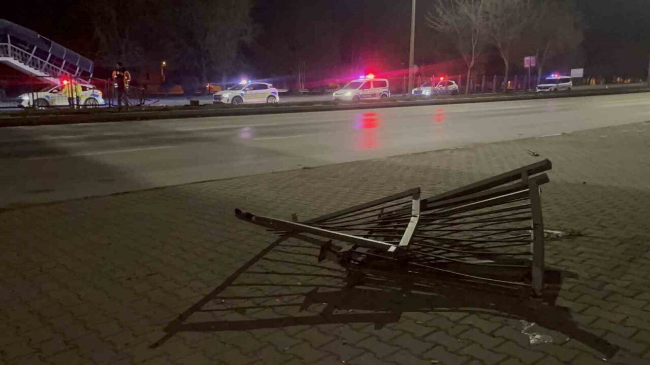 Aracın çarptığı korkulukların yerinden kopması ve karşıya uçması, kazanın şiddetini gözler önüne serdi.