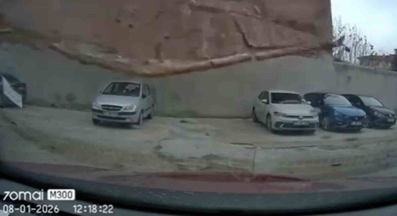 Yenibağlar Mahallesi Hacı Hüsnü Sokak’ta dünkü olay, saat 12.40 sıralarında gerçekleşti. Şiddetli rüzgar nedeniyle bir binanın çatı duvarı yanındaki otoparkın üzerine çökmüştü. Çevre sakinlerinin gürültü sebebiyle “patlama” ihbarında bulunduğu bu olay, polis ve itfaiye ekiplerinin harekete geçmesine neden oldu. Olayın ardından bugün çıkan yeni gelişmede, 6 aracın zarar gördüğü ve şans eseri yaralananın olmadığı anlar, otoparkta bulunan bir aracın kamerasına yansıdı. Ortaya çıkan görüntülerde, duvarın devrilme anı ve araçların enkazın altında kaldığı anlar yer alıyor.