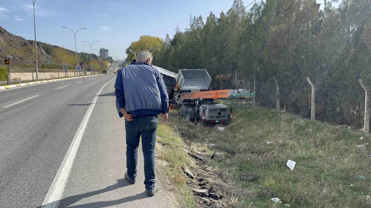 Kaza, Odunpazarı ilçesindeki Orhangazi Mahallesi’nde meydana geldi. Edinilen bilgilere göre, Kütahya-Eskişehir kara yolunda seyir halindeki H. K. idaresindeki 16 ACR 477 plakalı kamyonet, bir virajı dönerken kontak anahtarının düşmesiyle direksiyon kontrolünü kaybetti. Direksiyonu kontrol edemeyen sürücü, yol kenarındaki şarampole savrularak kamyonetini yan yatarak durdurabildi.