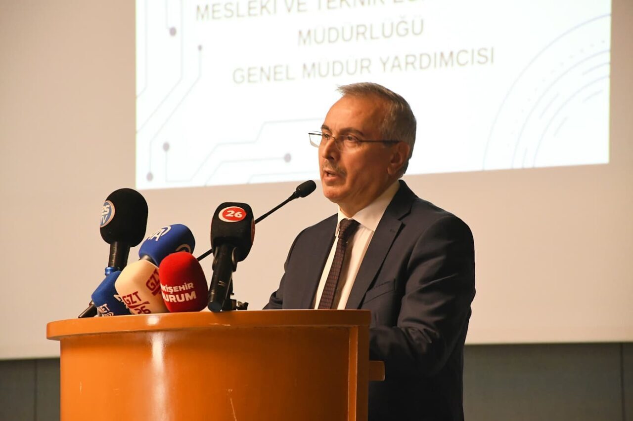 Meslekî ve Teknik Eğitim Genel Müdür Yardımcısı Mehmet Bal ise meslekî eğitimin Türkiye’nin kalkınmasına ne denli katkı sağladığını vurguladı. Bal, “Ülkedeki 3.400’ün üzerinde meslekî eğitim kurumunda 1.6 milyon öğrencimiz eğitim alıyor. Eskişehir’deki 34 meslek lisesinde ise yaklaşık 16.800 öğrenci var. Bu gençler, geleceğin üretim gücünü temsil ediyor. Çalıştayda oluşacak her öneri, hem şehrimizin hem de ülkemizin meslekî eğitim stratejisine yön verecek,” şeklinde konuştu.