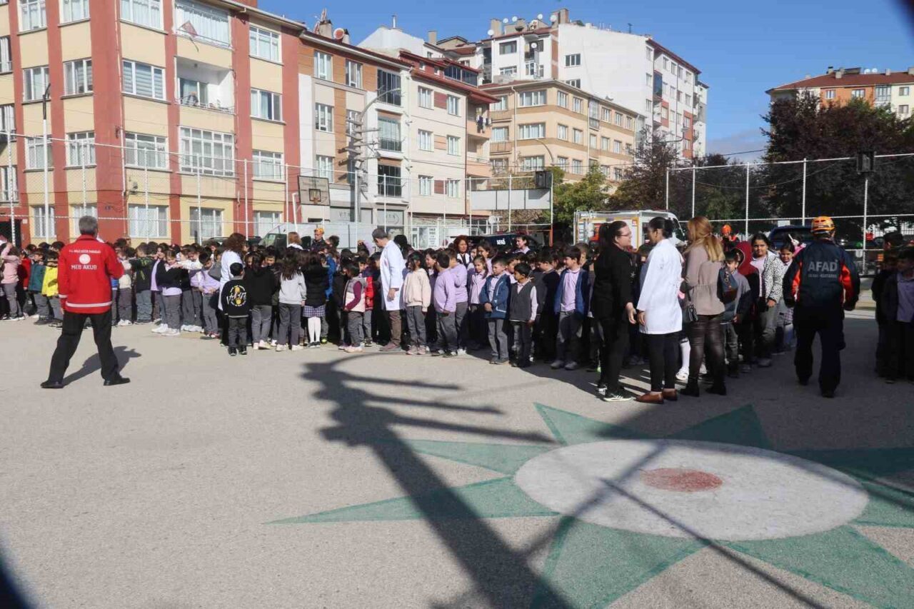Eskişehir’de, Afet ve Acil Durum İl Müdürlüğü (AFAD) tarafından ilkokul öğrencilerine yönelik deprem tatbikatı ve afet eğitimi düzenlendi.