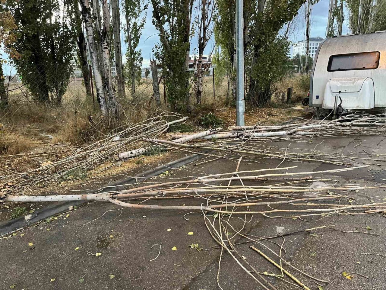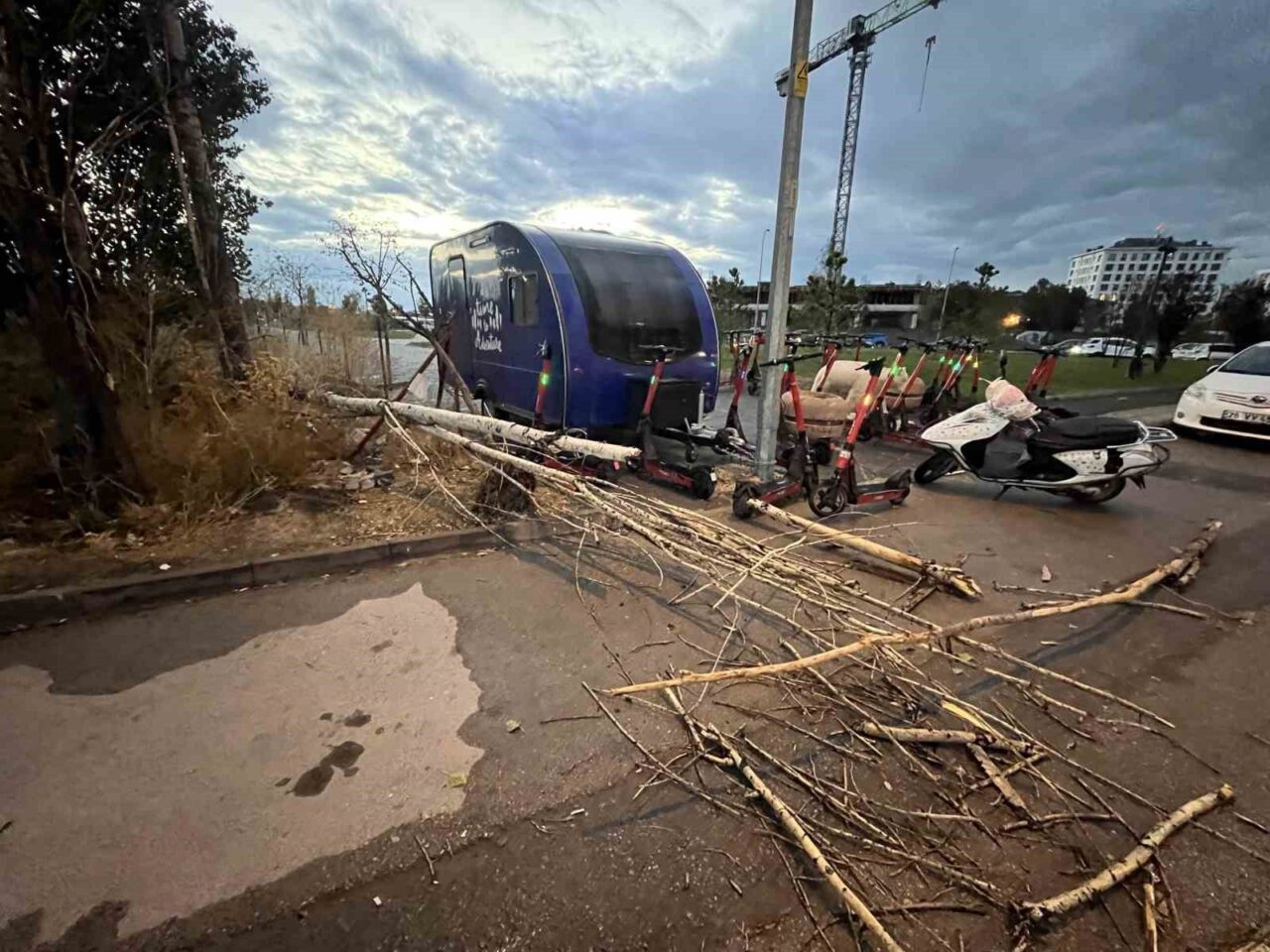 Ayrıca, düşen dal parçalarının yola da düştüğü ve bu durumun trafiği tehdit ettiği gözlemlendi. Olay yerinde, aracın yakınında bulunan iki farklı noktalarda da ağaçların kırıldığı ve dallarının yola sarktığı belirlendi. Rüzgarın, bu tür olaylara neden olabileceği bir kez daha gözler önüne serildi.
