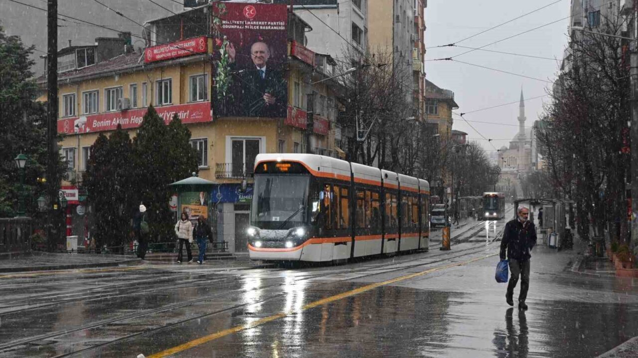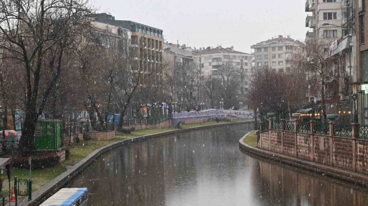 Eskişehir’de sabah saatlerinde başlayan kar yağışı güzel görüntüler oluşturdu