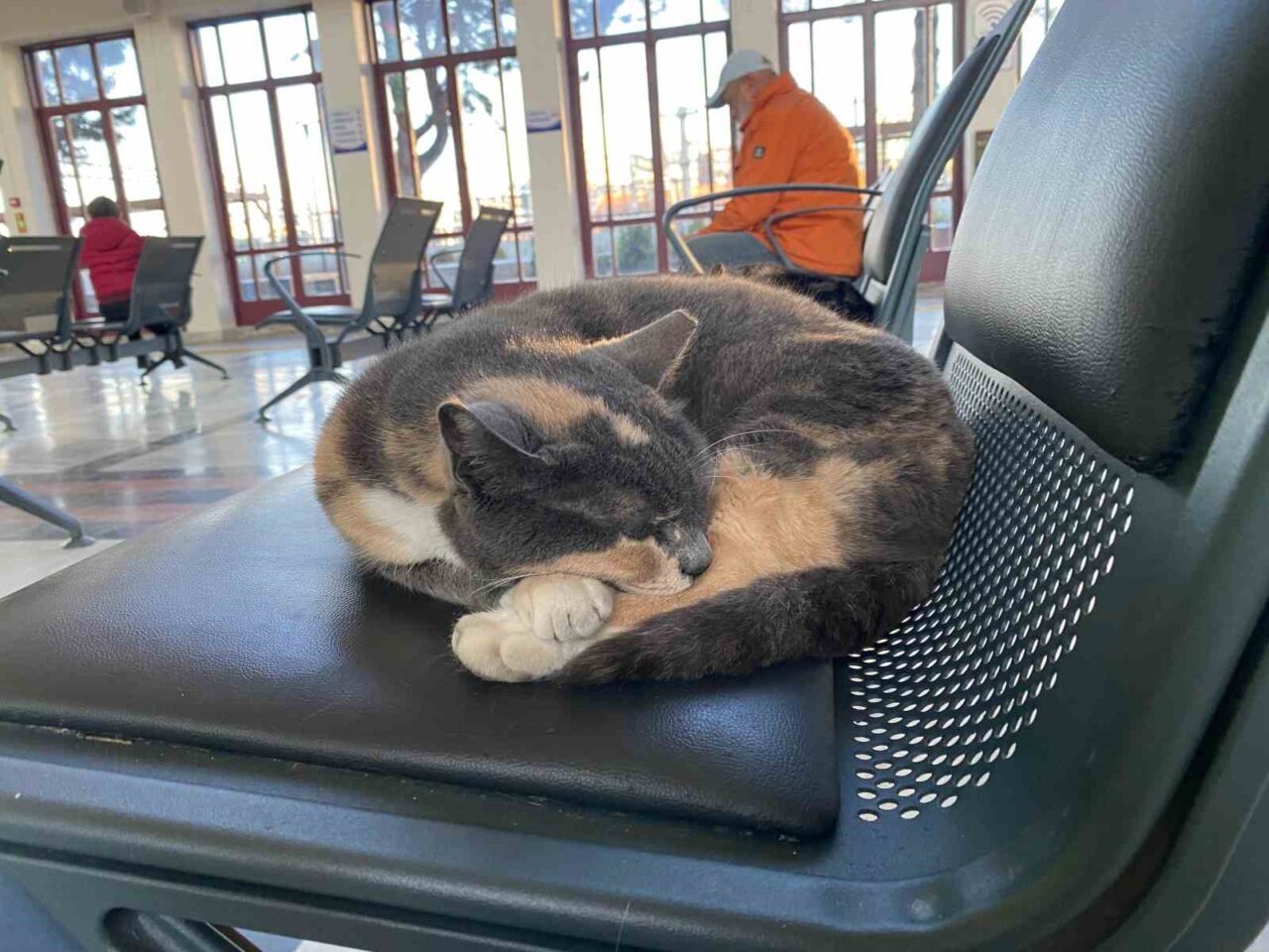 Hava sıcaklıklarının eksi değerlere düşmesi, sokak hayvanları için yaşam koşullarını zorlaştırdı. Soğuktan üşüyen bazı kediler, ısınmak amacıyla Eskişehir Tren İstasyonu’na sığındı. İçerideki koltukların üzerinde kıvrılarak uyuyan sevimli hayvanlar, güzel ve ilginç bir manzara oluşturdu. Tren saatini bekleyen yolcular, yanlarında uyuyan kedileri severek keyifli vakit geçirdi. Bazı duyarlı vatandaşların ise, içeriye sığınan kediler için çevrede yiyecekler bıraktığı gözlemlendi.