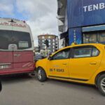 Eskişehir’de bir taksinin dönüş yapan dolmuşa çarpması sonucu gerçekleşen trafik kazasında her iki araçta da maddi hasar meydana geldi.