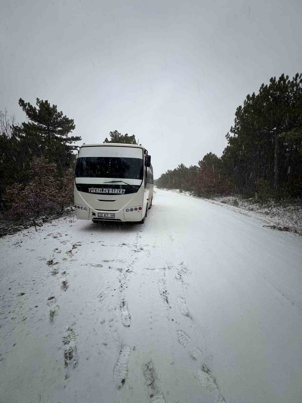 Eskişehir’de Türkmendağı eteklerinde kar yağışı sonrası beyaz örtü oluştu.