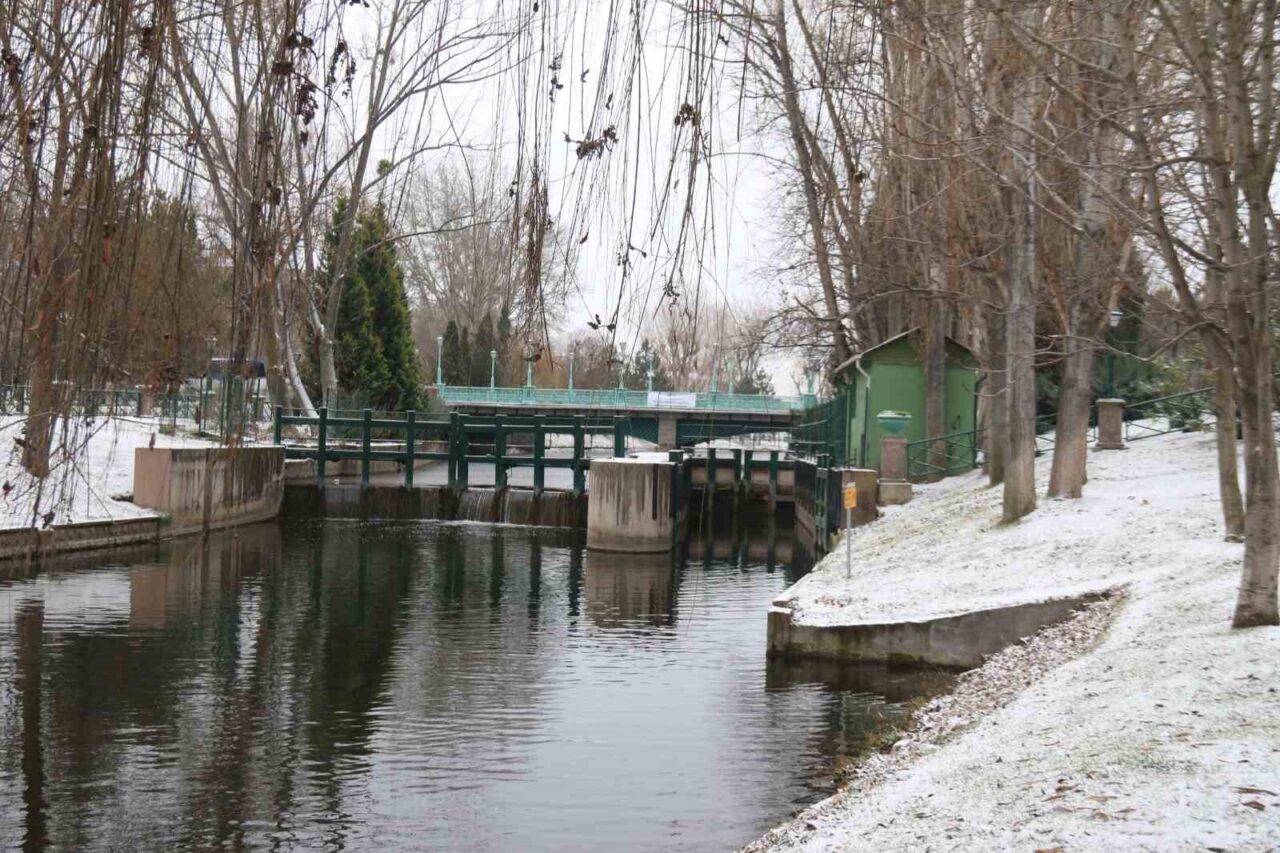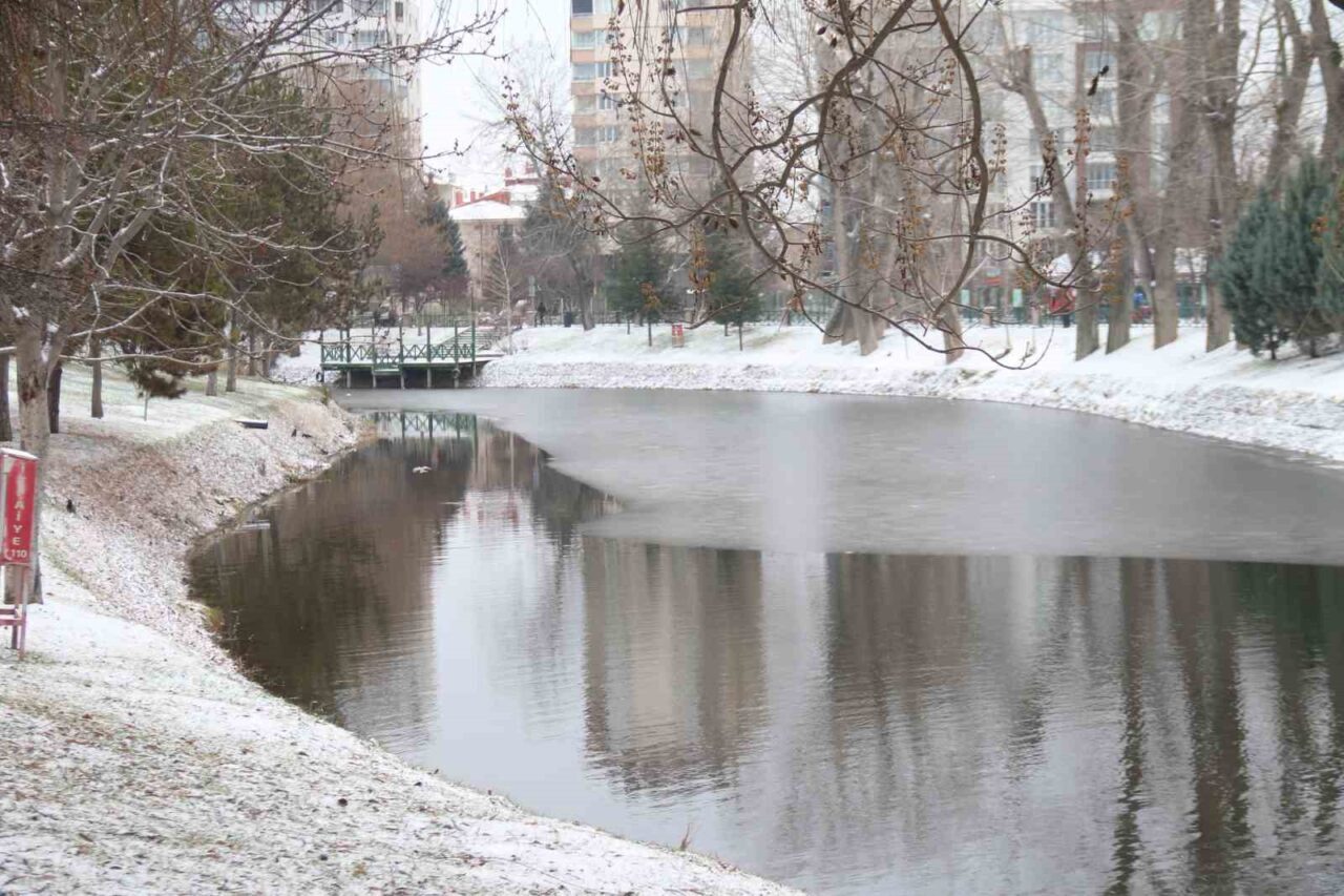 Eskişehir’de yılın son gününe kar yağdı, Porsuk Çayı’nın bazı bölümleri ise dondu.
