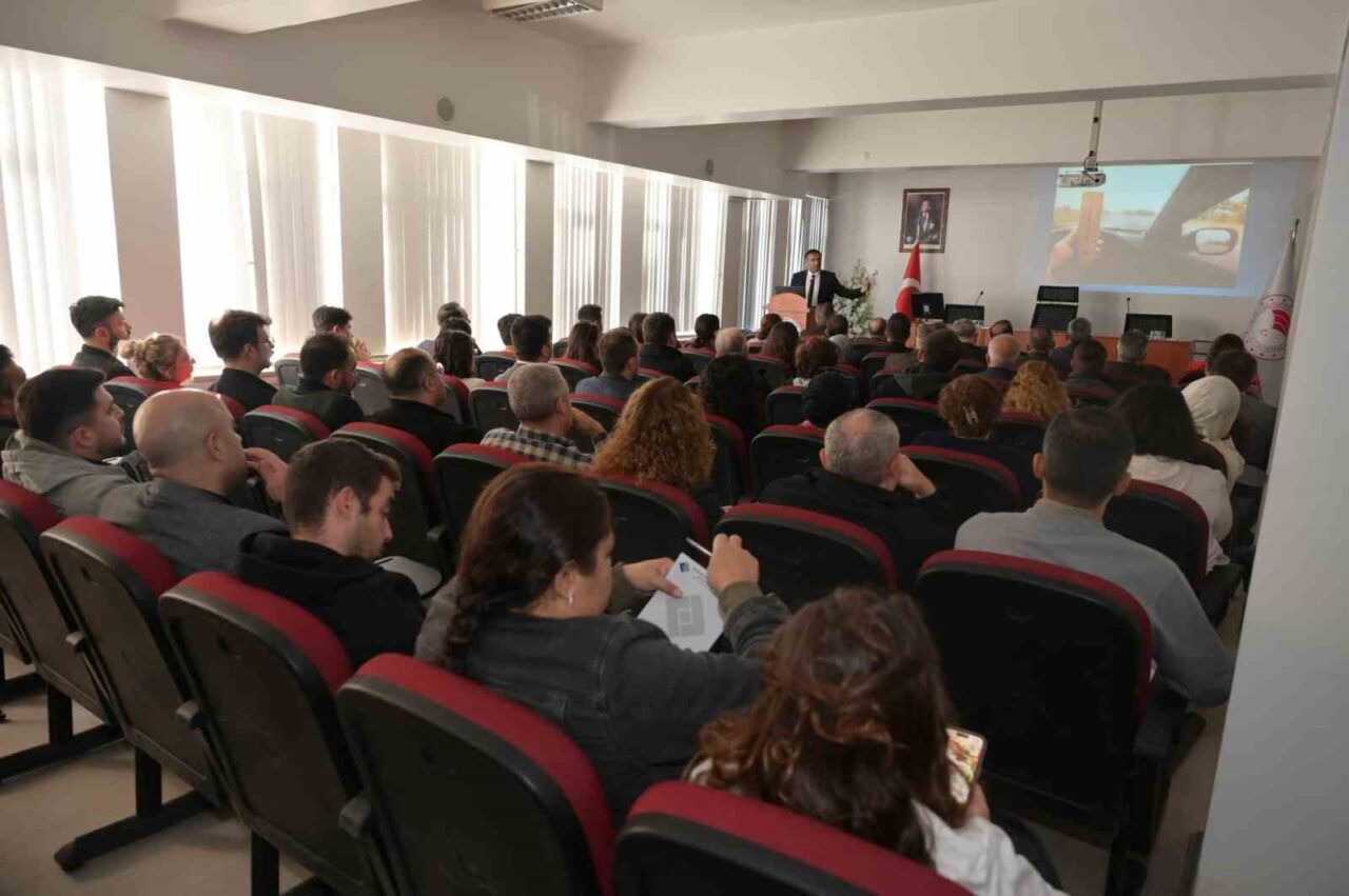 DENİZLİ’DE TARIM VE ORMAN BAKANLIĞININ “TKİ-HÜMAS ÖRNEK UYGULAMALARIYLA ORGANİK TOPRAK DÜZENLEYİCİ KULLANIMININ YAYGINLAŞTIRILMASI PROJESİ” KAPSAMINDA TOPRAKLARDA ORGANİK MADDE ARTIŞINI SAĞLAMAK AMACIYLA TEKNİK PERSONEL VE ÜRETİCİLERE YÖNELİK BİLGİLENDİRME TOPLANTISI GERÇEKLEŞTİRİLDİ. TOPLANTIDA AÇIKLAMALARDA BULUNAN İL TARIM VE ORMAN MÜDÜRÜ MUSTAFA NEVZAT ZAYİM, “”600 LİTRE HÜMİK ASİT 15 ÜRETİCİDE UYGULANDI” DEDİ.