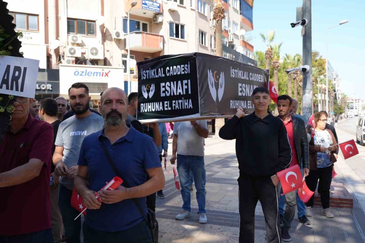 Denizli’de İstiklal Caddesi’nde gerçekleştirilen ‘Otobüs Yolu’ projesine yönelik eleştirilerini dile getiren esnaf ve vatandaşlar, belediyeye dikkat çekmek amacıyla ilginç bir eyleme imza attı. “İstiklal Caddesi esnafı ruhuna el Fatiha” yazılı bir tabut ve siyah çelenk ile Denizli Büyükşehir Belediyesi önüne yürüyen protestocular, kapanma riskiyle karşı karşıya kalan işyerlerine dikkat çekti.
