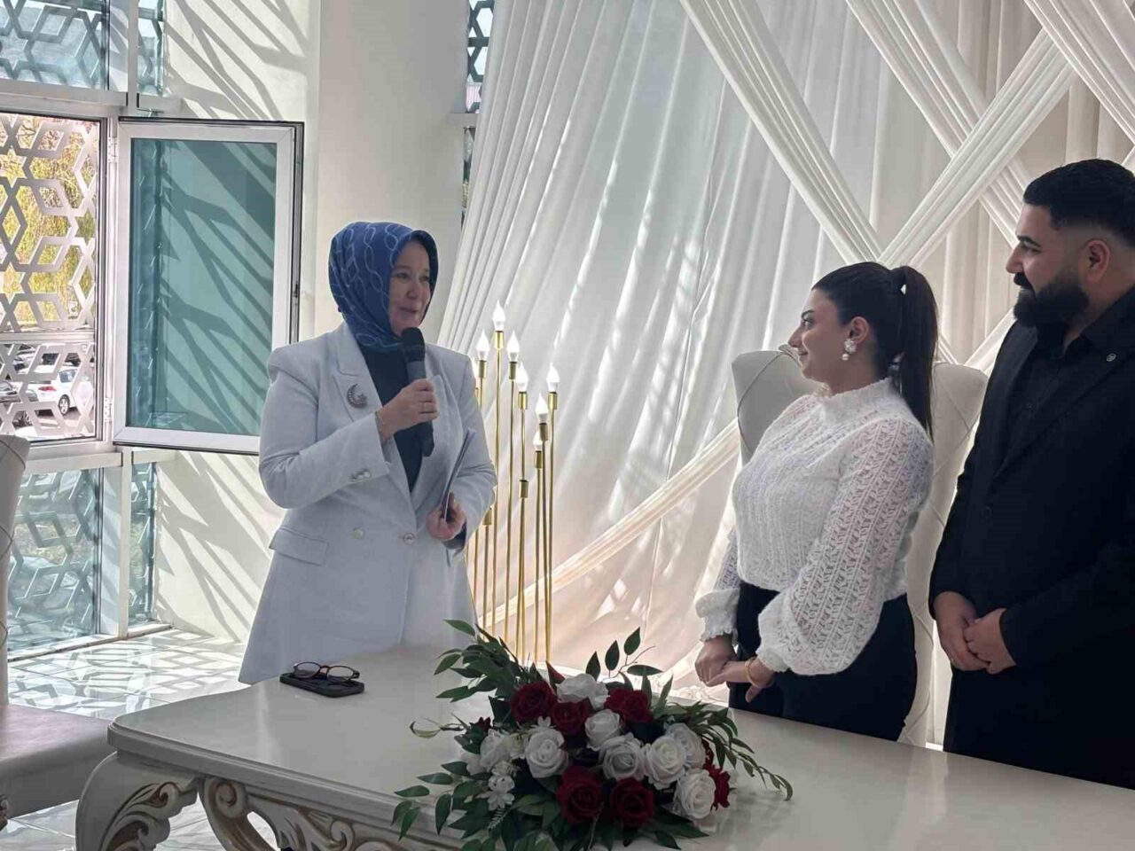Aile ve Sosyal Hizmetler Bakanlığı’nın öncülüğünde hayata geçirilen ‘Evlenecek Gençlerin Desteklenmesi Projesi’, ülke genelinde etkin bir şekilde devam ediyor. Bu kapsamda, Bingöl’de düzenlenen bir nikah töreninde, Aile ve Sosyal Hizmetler Bakan Yardımcısı Leman Yenigün, evlenecek olan Serhat Çaparlar ve Yıldız Kılıçgedik çiftinin nikah şahidi olarak yer aldı.