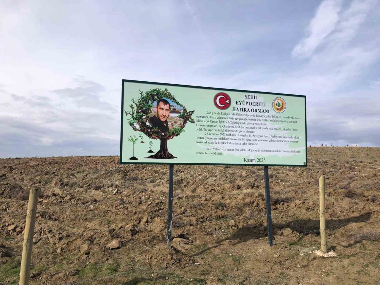 Eskişehir’in Seyitgazi ilçesinde meydana gelen orman yangınında hayatını kaybeden dozer operatörü Eyüp Dereli için düzenlenen anma etkinliğinde 15 bin fidan dikildi. Törene şehidin kardeşi Faik Dereli ve çocuğu Batuhan Dereli ile birlikte çok sayıda vatandaş ve kamu temsilcileri katılım gösterdi.