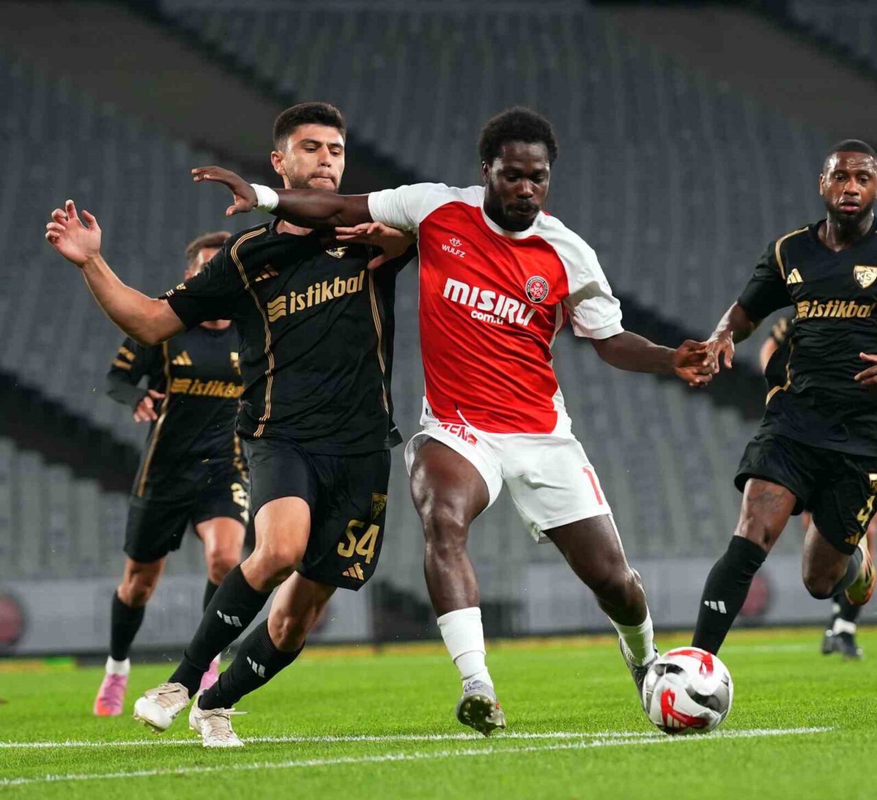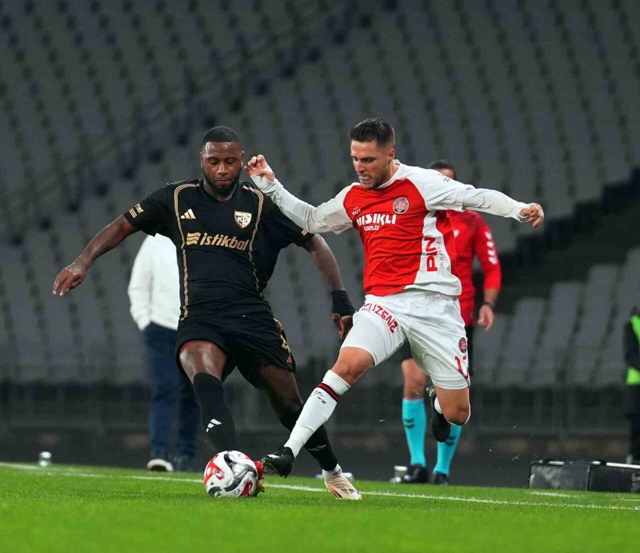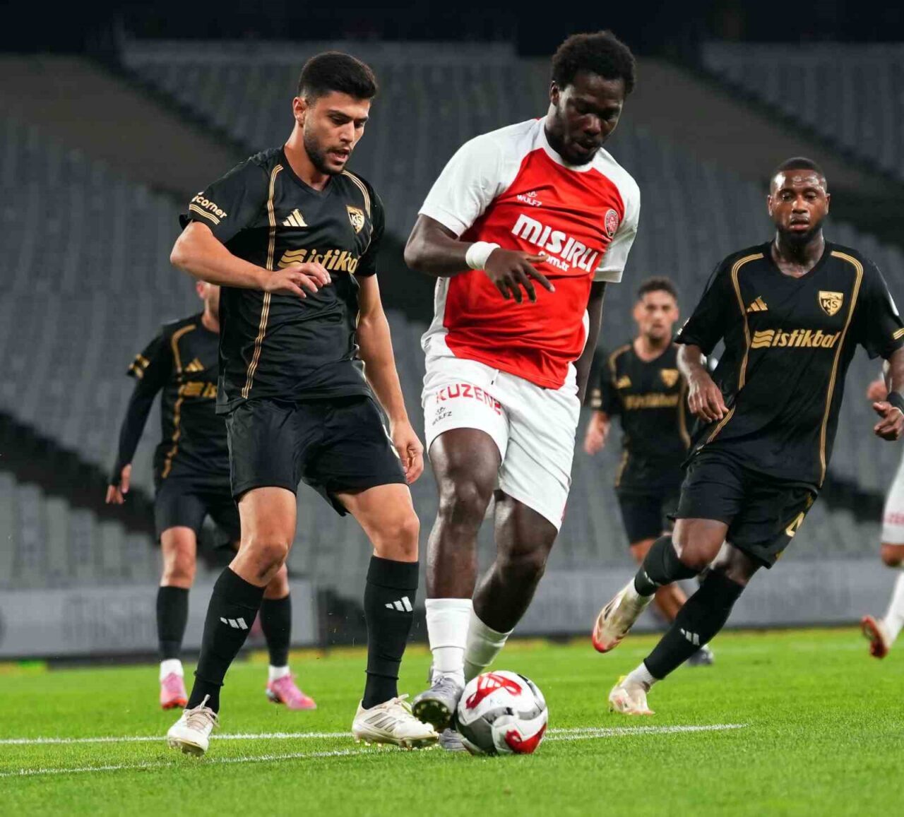 TRENDYOL SÜPER LİG’İN 10. HAFTASINDA FATİH KARAGÜMRÜK, ATATÜRK OLİMPİYAT STADYUMU’NDA KAYSERİSPOR’U AĞIRLIYOR. MÜCADELENİN İLK YARISI EV SAHİBİNİN 1-0’LIK ÜSTÜNLÜĞÜYLE TAMAMLANDI.