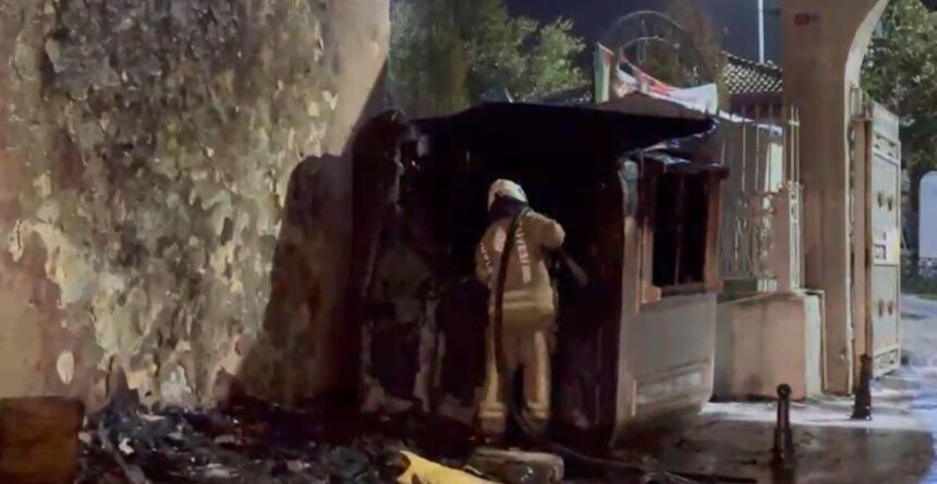 İstanbul’un Fatih ilçesinde yer alan Sümbül Efendi Cami’sinin önündeki güvenlik kulübesi, alevlerin etkisiyle tamamen yanarak kullanılamaz hale geldi.