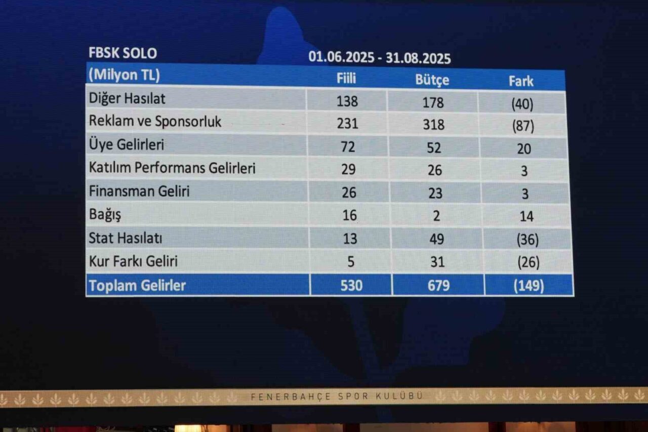 31 Ağustos 2025 tarihi itibarıyla Fenerbahçe Futbol A.Ş. ve ortaklarının TFRS’ye göre yapılan bağımsız denetim raporu ile Fenerbahçe Spor Kulübü’nün vergi usulüne dayalı finansal tablolarındaki denetim çalışmaları detaylı bir şekilde aktarıldı. Fenerbahçe Futbol A.Ş., 01.06.2025 – 31.08.2025 dönemine ait raporuna göre; 3 milyar 541 milyon TL gelir ve 3 milyar 362 milyon TL gider bildirdi. İşletmenin bu dönemdeki karı ise 179 milyon TL olarak kaydedildi.