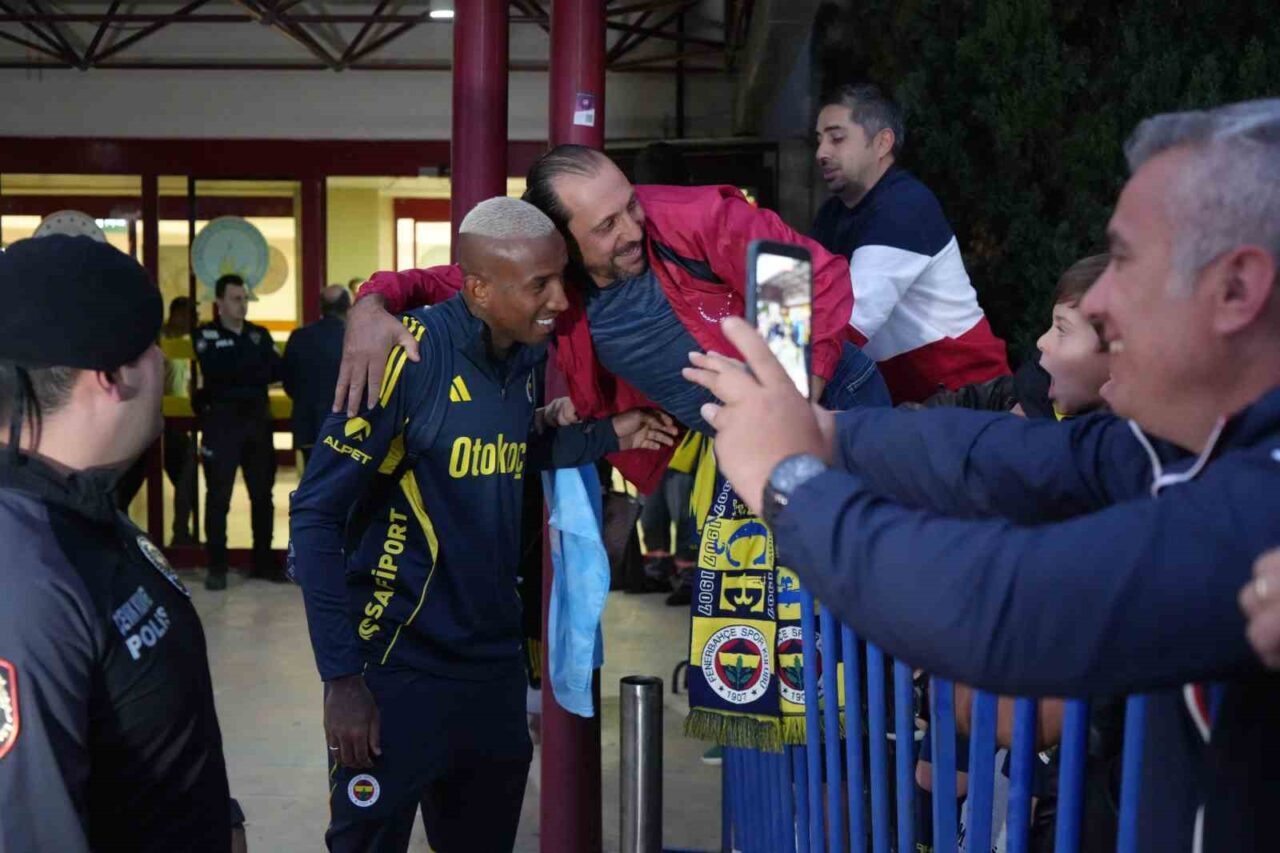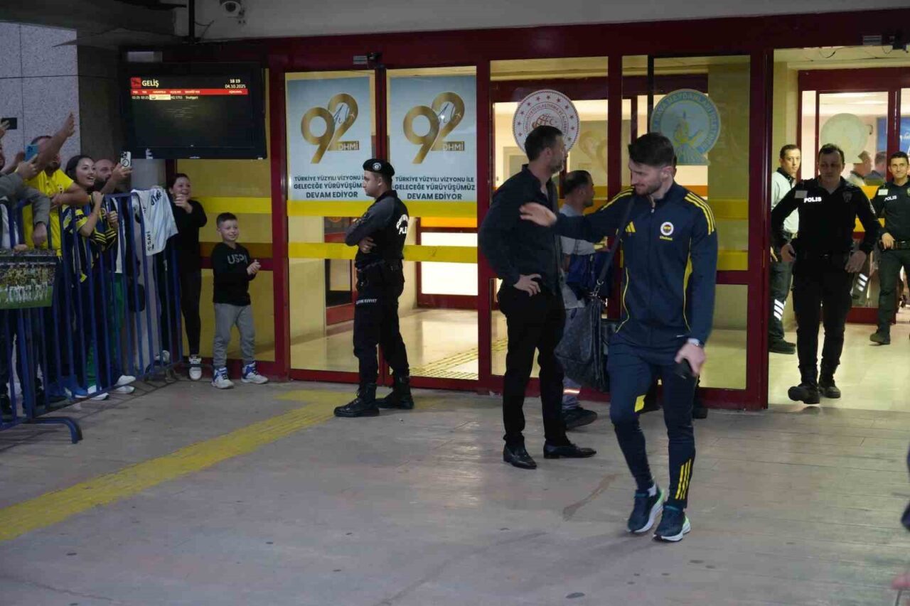 Fenerbahçe futbol takımı, maç öncesi havalimanında taraftarları tarafından neşeli bir ambiyansla karşılandı. Güvenlik şeridinin dışında bekleyen destekçileri, futbolculara coşkuyla tezahürat yaparak moral verdi. Taraftarlar, futbolculara çiçek sunarken, bazı oyuncular da tezahürat yapan hayranlarının uzattığı formaları imzaladı.