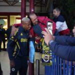 Fenerbahçe futbol takımı, maç öncesi havalimanında taraftarları tarafından neşeli bir ambiyansla karşılandı. Güvenlik şeridinin dışında bekleyen destekçileri, futbolculara coşkuyla tezahürat yaparak moral verdi. Taraftarlar, futbolculara çiçek sunarken, bazı oyuncular da tezahürat yapan hayranlarının uzattığı formaları imzaladı.