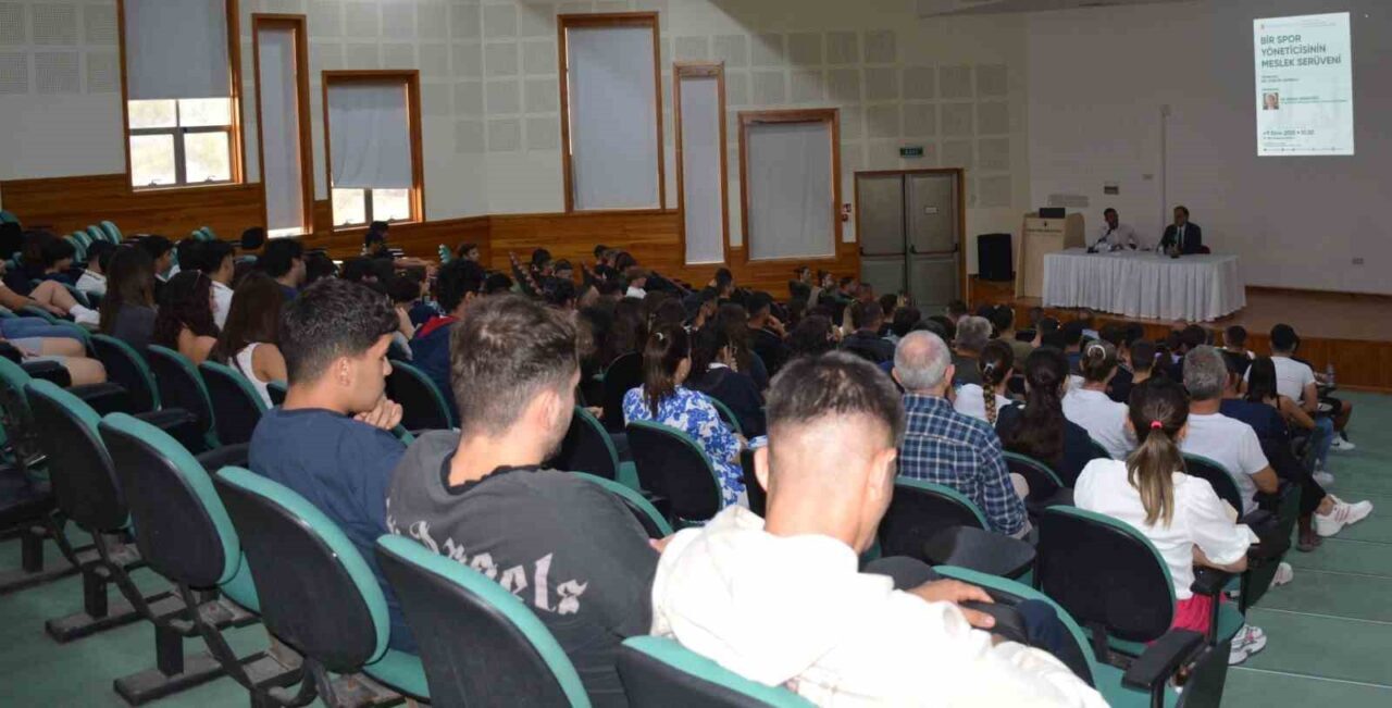 Yakın Doğu Üniversitesi Spor Bilimleri Fakültesi Beden Eğitimi ve Spor Öğretmenliği Bölümü ile Spor Bilimleri Araştırma Merkezi’nin işbirliğiyle düzenlenen “Bir Spor Yöneticisinin Meslek Serüveni” başlıklı söyleşide Dr. Gündoğdu, spor yönetimi konusundaki tecrübelerini dinleyicilerle paylaştı. Disiplin, etik değerler, liderlik ve iletişimin önemine dikkat çeken Gündoğdu, genç öğrencilere kariyer planlamalarında sabırlı, kararlı ve vizyon sahibi olmaları gerektiğini vurgulayarak, “Emeklerinize değer verin; ödüllerini fazlasıyla toplarsınız” diyerek tavsiyelerde bulundu.