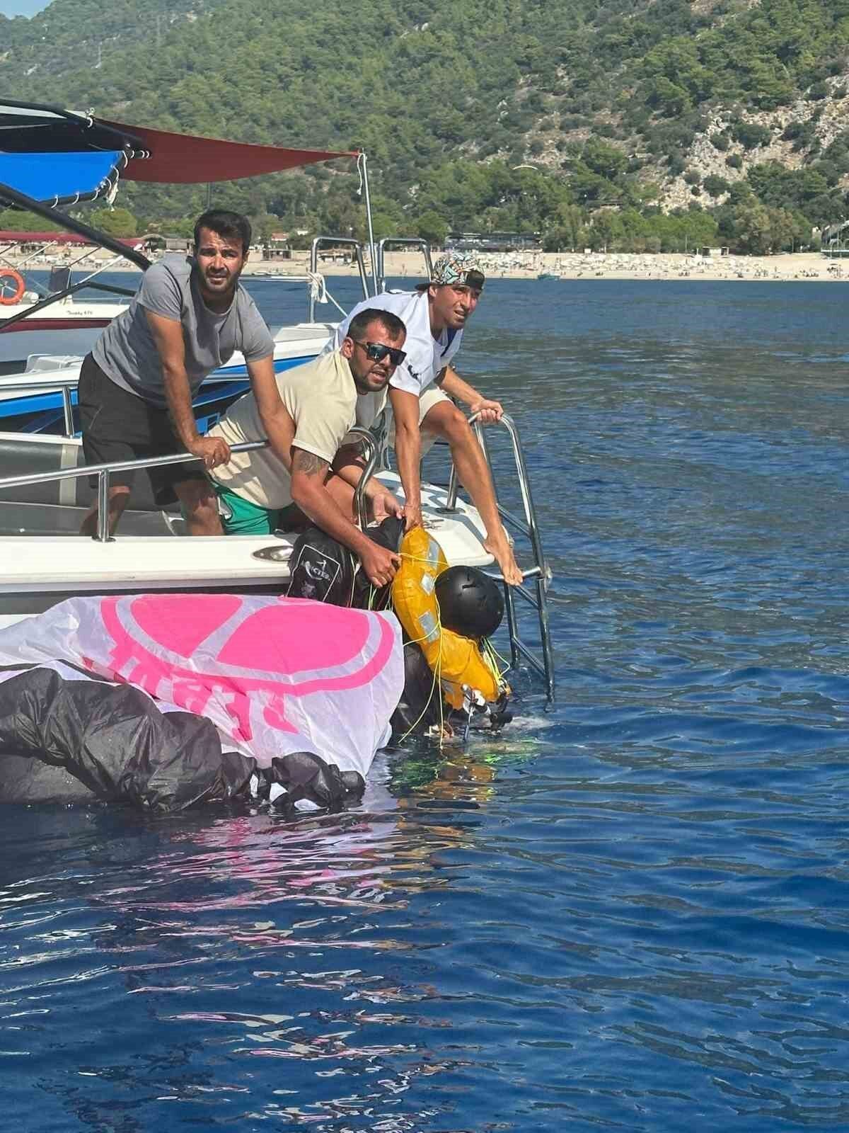 Olayın detaylarına göre, Babadağ’dan single atlayışını gerçekleştiren pilot F.S., iniş anında kontrolünü kaybetmesi sonucu denize düştü. O sırada çevrede bulunan tekneciler durumu fark ederek hızla yardım için olay yerine yöneldi. Pilot, baygın bir şekilde denizden çıkarıldı ve kıyıya ulaştırıldı.