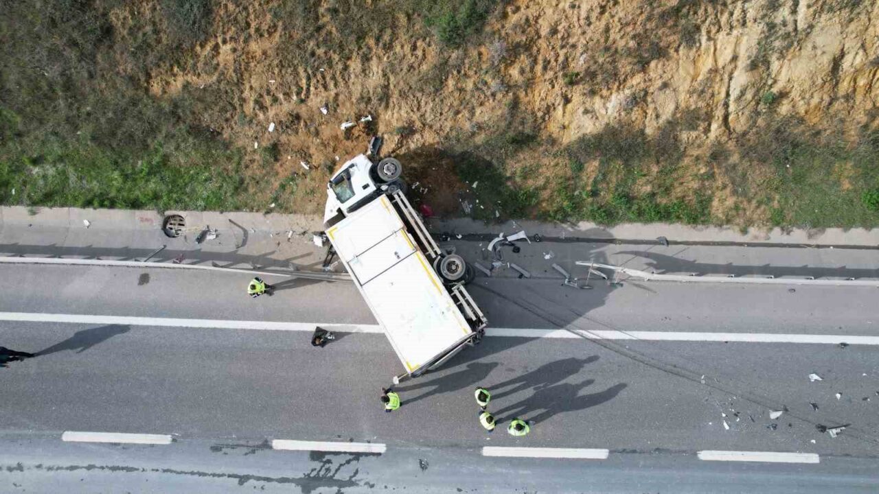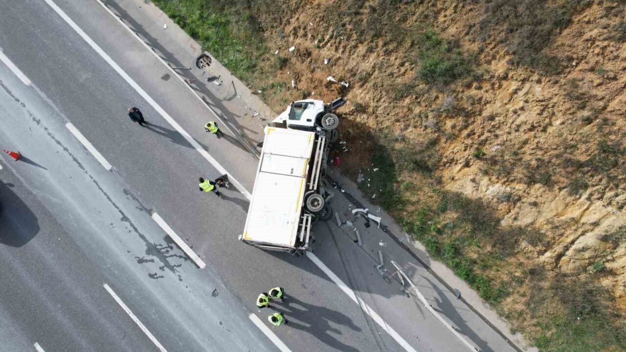 KUZEY MARMARA OTOYOLU ÜZERİNDE İKİ KAMYON VE BİR TIRIN KARIŞTIĞI ZİNCİRLEME TRAFİK KAZASI MEYDANA GELDİ.