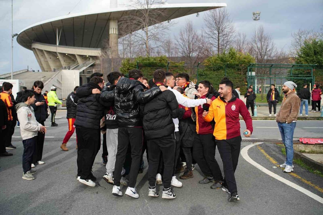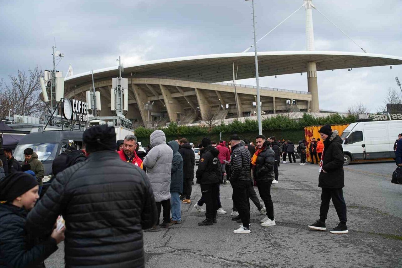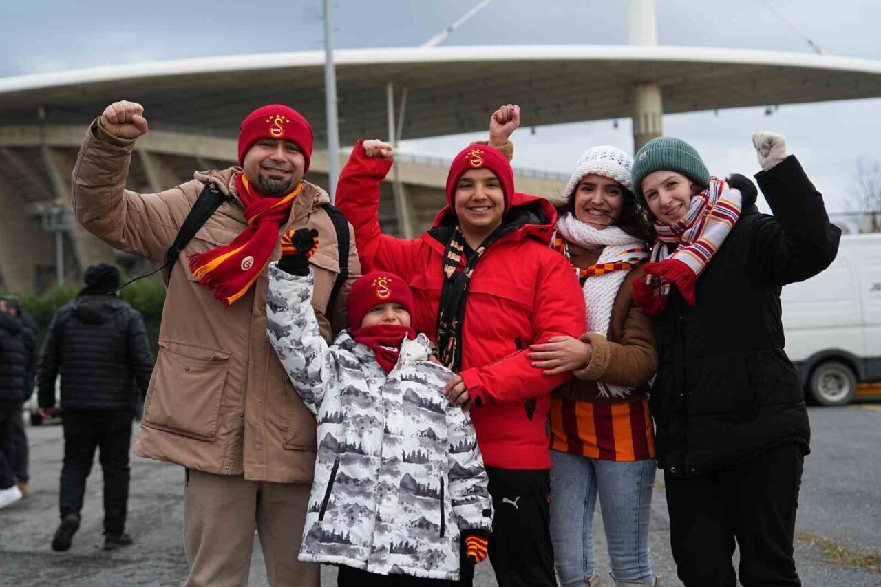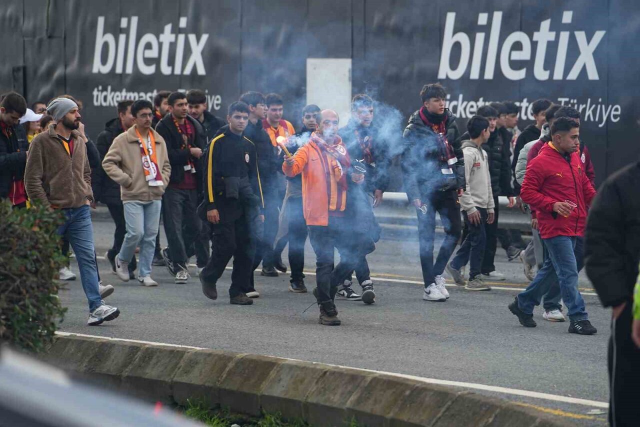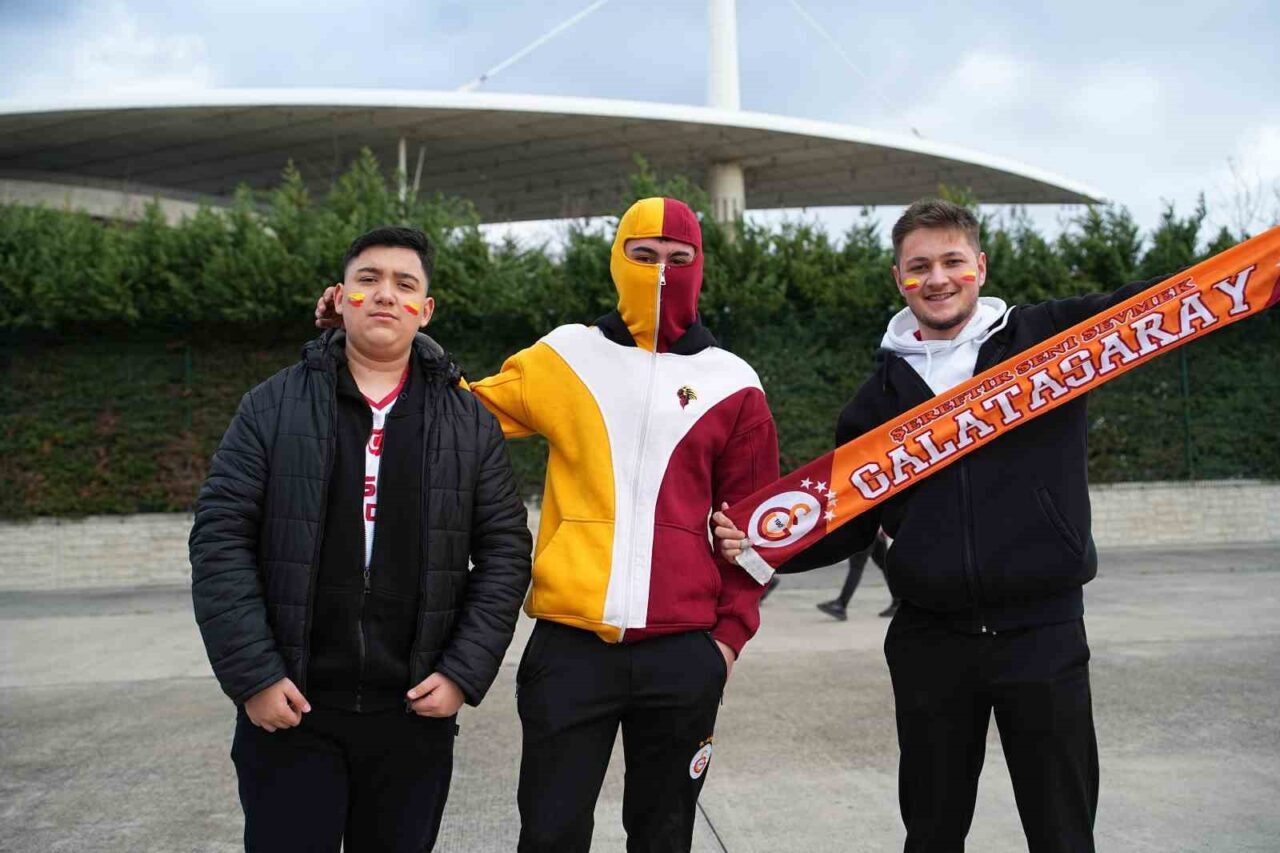 Galatasaraylı taraftarlar, stat etrafında yaptıkları beste ve tezahüratlarla derbiye hazırlıklarını sürdürüyor. Taraftarlar, 15.45 itibarıyla stada giriş yaparak, kendilerine ayrılan bölüm olan Batı ve Güney Tribünü’ndeki yerlerini aldı.