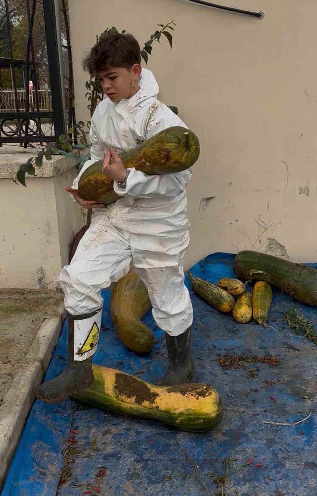 Bunlardan biri olan Kıbrıs bal kabağının tohumunu yurt dışı gezisinde bulup getirdiğini belirten Atay, “Alanımızda ektik ve iyi verim aldık. Doğal yöntemlerle 30 kilograma ulaşan farklı ağırlıklarda Kıbrıs kabağı ürettik.” dedi.