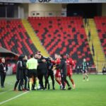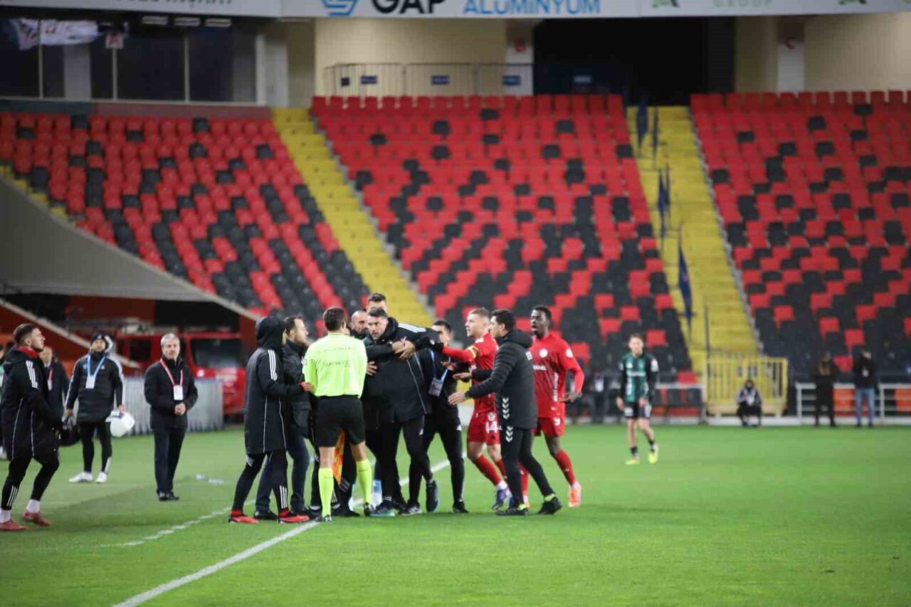 14. dakikada hakem Burak Pakkan, Gaziantep FK Teknik Direktörü Burak Yılmaz’a yoğun itirazları nedeniyle kırmızı kart gösterdi.