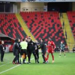 13. dakikada yapılan VAR incelemesinin ardından Gaziantep FK’dan Tayyip Talha Sanuç, rakibine yönelik sert müdahalesi nedeniyle direkt kırmızı kart gördü.