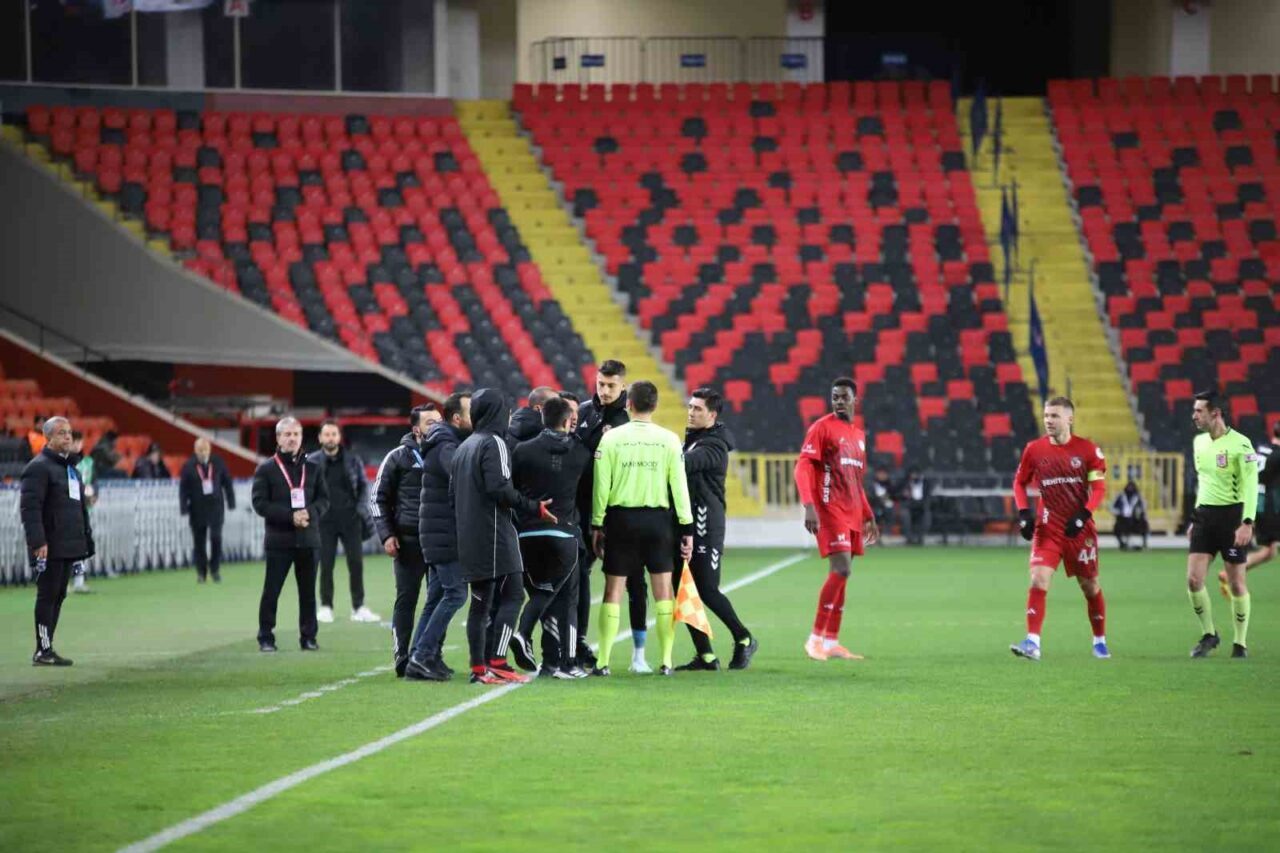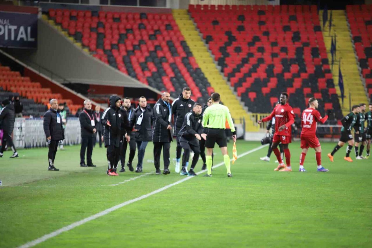 14. dakikada hakem Burak Pakkan, Gaziantep FK Teknik Direktörü Burak Yılmaz’a yoğun itirazları nedeniyle kırmızı kart gösterdi.