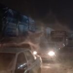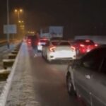 Gaziantep-Kahramanmaraş karayolunda yoğun kar nedeniyle araç kuyruğu oluştu, birçok araç mahsur kaldı.