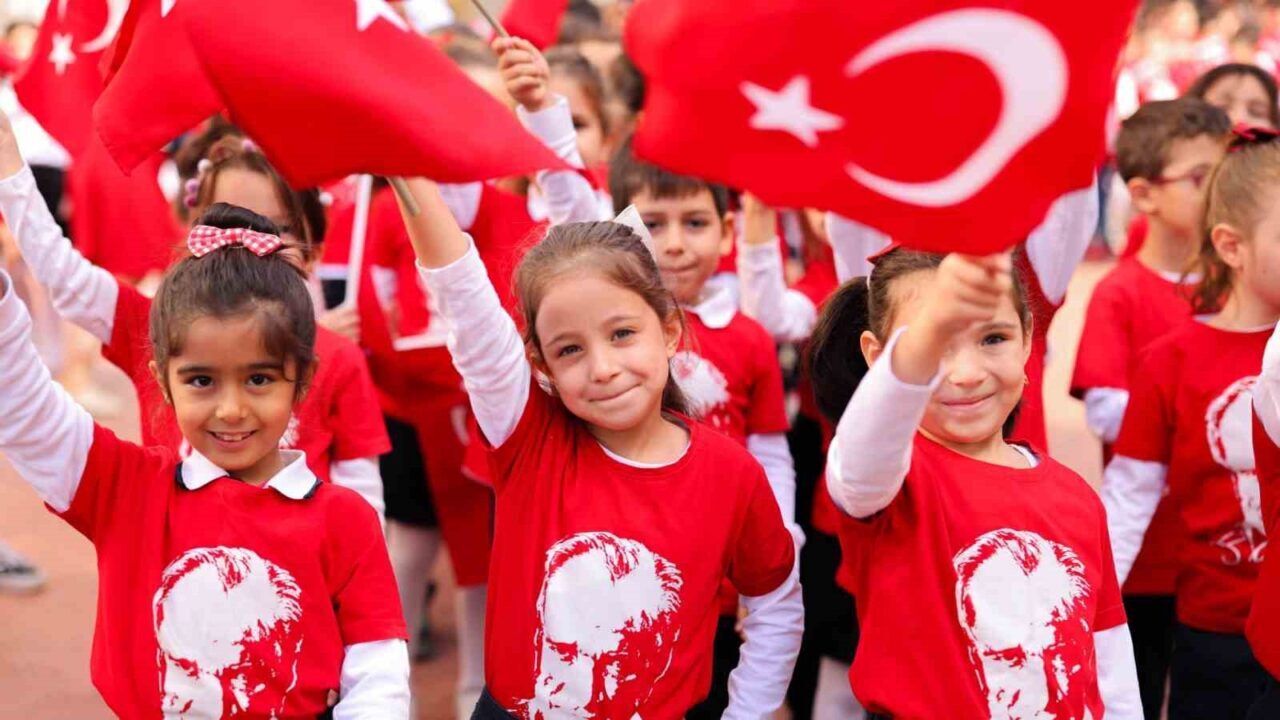Minik öğrenciler marşlar eşliğinde yürüyüş yaparken, etkinliğin devamında gösteri olarak bir vals performansı sergilendi. Bu büyüleyici an, izleyiciler tarafından hayranlıkla takip edildi. Törende, etkinliğe katılan herkes Türk bayraklarıyla Cumhuriyet Marşları’nı coşkuyla söyledi.