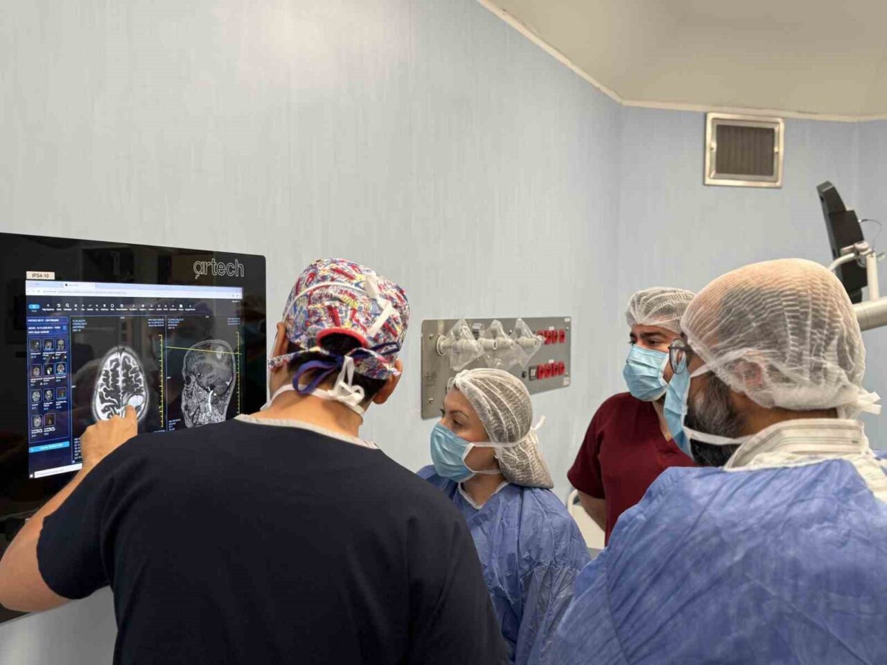 Beyin Cerrahisi Uzmanı Uzm. Dr. Özcan Sönmez, gerçekleştirilen ameliyat hakkında bilgi verirken, “Hastamızın hareket merkezine yakın bir kitle bulmuştuk. Geleneksel cerrahi yöntemlerde kalıcı güç kaybı riski söz konusu olduğu için uyanık yöntemi tercih ettik. Operasyon esnasında birebir muayene ve iletişim ile el-kol fonksiyonlarını kontrol ederek, önemli beyin bölgelerine zarar vermeden tümörü tamamen çıkarmayı başardık. Yaklaşık 3,5 saat süren bu operasyon oldukça başarılı geçti.” şeklinde konuştu.