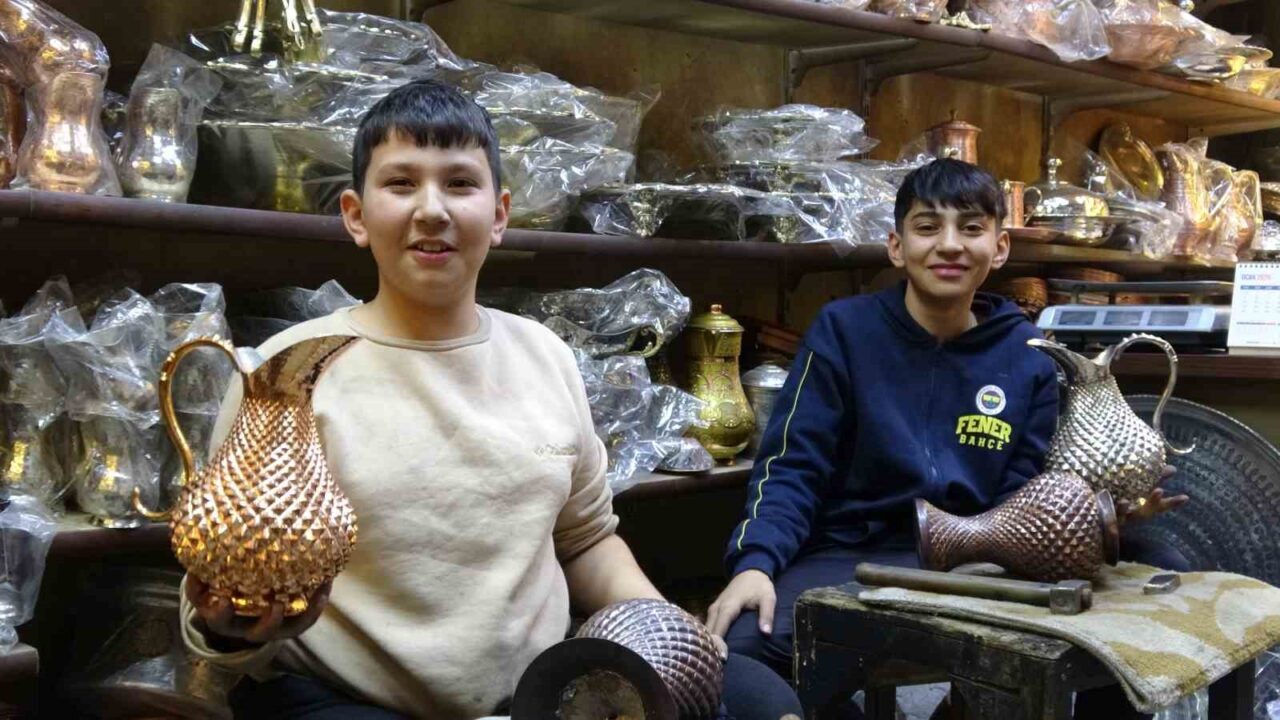 Lise 1’inci sınıf öğrencisi Ahmet Cengiz ise babasının mesleğini öğrendiği için çok mutlu olduğunu belirterek, “Bakırcılık mesleğini öğreniyorum. Babamın yaptığı mesleği yapıyorum. İlkokuldan beri hem okula gidiyorum hem de babamın yanında meslek öğreniyorum. Hem okumak hem de çalışmak istiyorum. Bu şekilde babamın mesleğini geliştirmek istiyorum. Meslek altın bileziktir” diye konuştu.