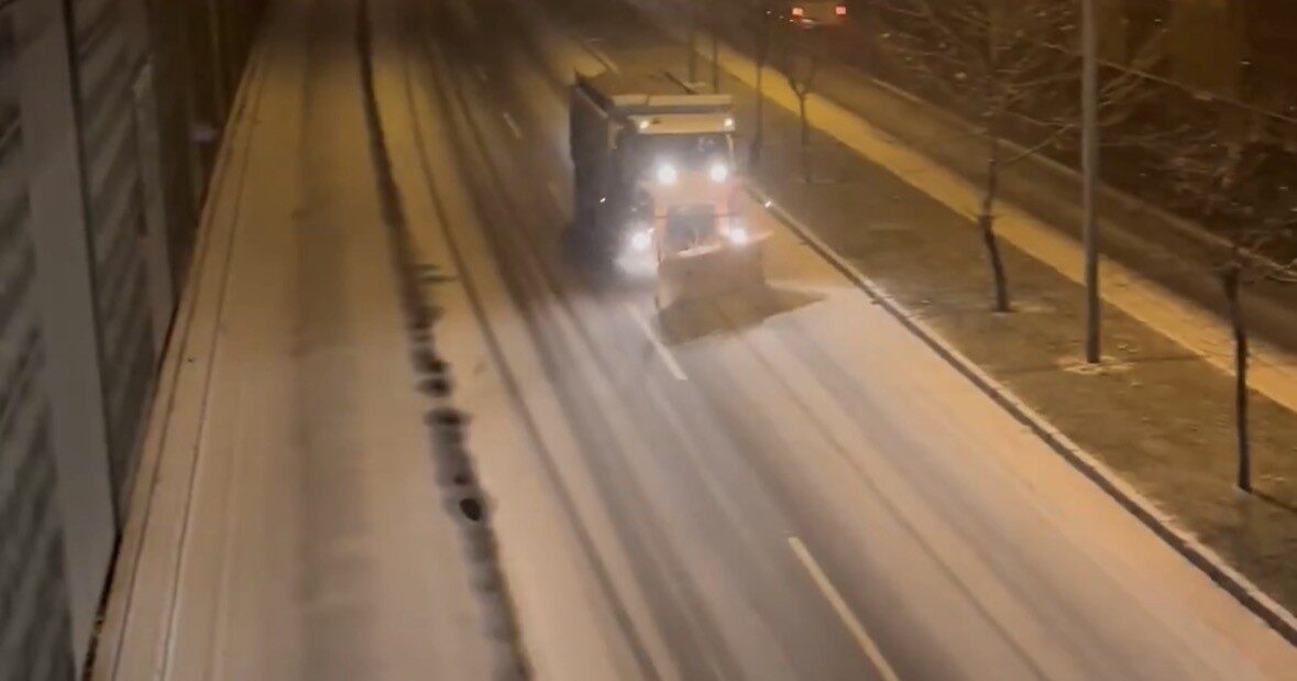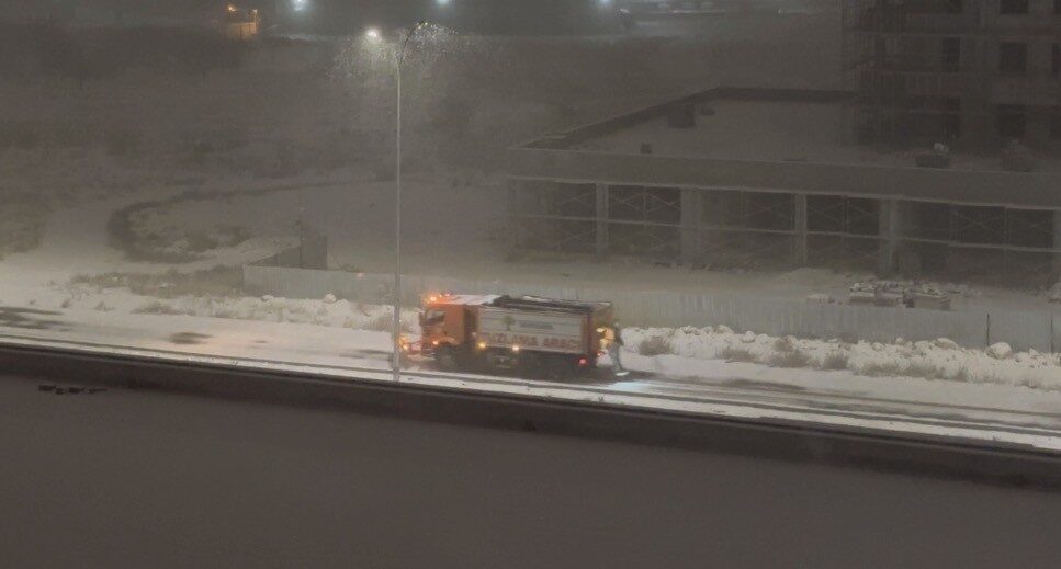 Gaziantep’te beklenen yoğun kar yağışı etkili olmaya başladı, belediye ekipleri yolları açma ve tuzlama çalışmaları yaptı.