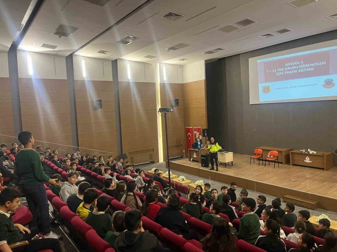 Gaziantep’te jandarma ekipleri, mobil trafik eğitim aracıyla 126 ilkokul öğrencisine trafik bilgilendirme eğitimi verdi.