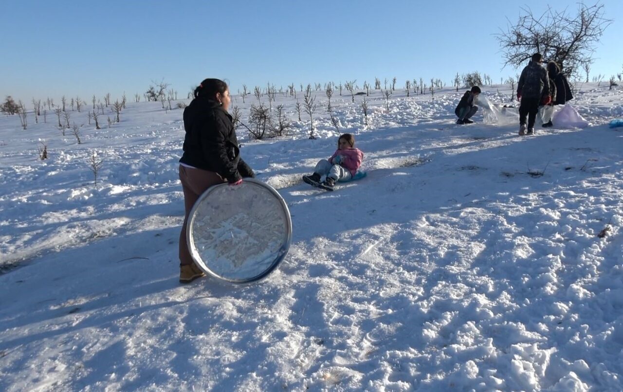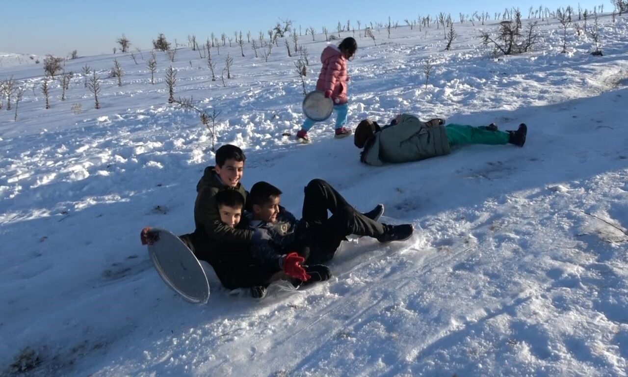 Kar yağışının ardından mahalledeki engebeli boş araziyi kayak pistine çeviren çocuklar, doyasıya eğlendi. Kar yağışıyla bembeyaz hale gelen tepe, hem çocukların hem de ailelerin eğlence mekânı haline geldi. Tepede yoğunluk oluşturan, naylon, leğen ve tepsilerle kayan çocuklar, büyük bir keyif aldı. Boş arazideki tepeleri kendi imkanlarıyla düzelterek kızak pistine dönüştüren çocuklar, naylon, tepsi ve leğenlerle kayarak eğlenceli anlar yaşadı.