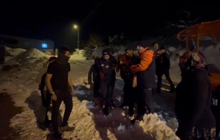 İhbar üzerine kırsal mahalleye sağlık ekipleri yönlendirildi. Yolların karla kaplı olması nedeniyle sağlık ekipleri mahalleye ulaşamayınca bölgeye paletli kar aracıyla AFAD ekipleri gönderildi.