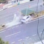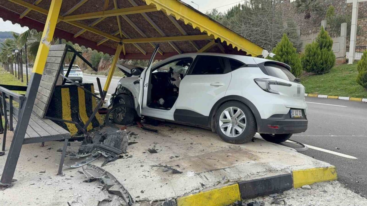 Antalya’nın Gazipaşa ilçesinde sürücüsünün direksiyon hakimiyetini kaybettiği otomobil, refüjde bulunan jandarma bekleme noktasına çarptı. Güvenlik kamerasına yansıyan kazada, araçtaki 4 kişi yaralandı.