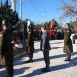 Törende konuşan Çanakkale Savaşları Gelibolu Tarihi Alan Başkanı İsmail Kaşdemir, 9 Ocak’ın zafer günü olduğunu belirtirken, “Bugün 9 Ocak, zafer günümüzdür. Zaferimiz kutlu olsun. Zaferin mimarlarına bin selam olsun. Allah onlardan razı olsun. Yaklaşık 8,5 ay süren büyük bir mücadelenin sonunda Türk milletinin galip geldiği yerdeyiz. Aslında uzun süren bir kötü gidişatın, bir geri çekilmenin son bulduğu topraklardayız. Tarihe şahitlik etmiş, herkesin bir yok oluş süreci beklediği ama Türk milletinin bir ve beraberlik içerisinde bir varoluş destanı yazdığı mekanlardayız. Memleketin kararmış ufuklarında şafağın söktüğü mekanlardayız. Cumhuriyetimize giden yolun başladığı, Kurtuluş Savaşımızın ilk işaret fişeklerinin atıldığı, tarih sahnesine bir kahraman olarak çıkardığımız ve Cumhuriyetimizin bânisi olacak, milli mücadelemize başkomutanlık edecek Gazi Mustafa Kemal Atatürk’ü tarih sahnesine çıkardığımız topraklardayız,” dedi. On binlerce şehidimizin toprak altında kefensiz yattığı ve Cenab-ı Hakk’ın ifadesiyle diri olduğu ve her daim onların manevi varlığını hissettiğimiz mübarek topraklardayız. Çanakkale’deyiz. Bu topraklarda 110 yıl önce Türk milletinin kahraman evlatları köyünden, kentinden, obasından koştu ve buradaki yangını söndürmeye geldi. Onların bir tek amacı vardı, vatan sağ olsun. Onlar şehit oldu, can verdi, toprağa düştü bu topraklar için. Kimi kan akıttı gazi oldu, vatan sağ oldu. Vatanın sağ kalan evlatları olarak bizler de şimdi onların hatıralarını yad ediyoruz. Onları hayırla anıyoruz. O büyük insanları unutmadığımızı, unutmayacağımızı dünyaya haykırıyoruz. Bin yıl geçse de kıyamete dek bu topraklarda ay yıldızlı al bayrak dalgalandığı sürece ki inşallah dalgalanacak o büyük kahramanları bu milletin evlatları bizler asla unutmayacağız. Çanakkale ruhu bir DNA’dır, bir kromozomdur, bir ruhtur. Gönüllerden, sinelerden asla çıkmaz” şeklinde konuştu.