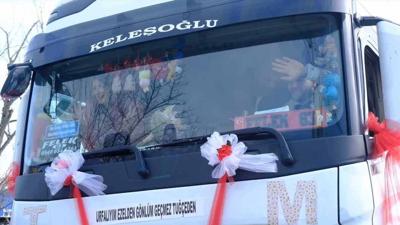 Edirne'nin Keşan ilçesinde tır şoförlüğü yapan Mehmet Şükrü Durak, hayatını birleştirdiği Tuğçe Durak'ı nikah salonuna süslediği tırı ile götürdü. Arkadaşları da tırları ile Durak'a eşlik etti.