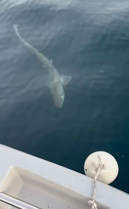 Köpek balığı, teknedeki balıkçılar tarafından görüntülendikten sonra, kısa bir süre içinde tekrar denize bırakıldı. O anlar ise cep telefonuyla kaydedilerek sosyal medyada paylaşıldı ve takipçilerinden büyük ilgi gördü.
