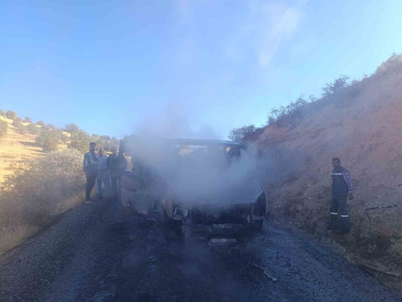 Gercüş’e bağlı Gökçepınar köyü civarında yaşanan olayda, Hüseyin Ş. yönetimindeki minibüsün motor kısmı bir anda tutuştu. Sürücünün durumu fark etmesiyle birlikte, hemen aracı durdurup yangına müdahale etmeye çalıştı. Ancak araç, kısa sürede alevlere kapıldı.
