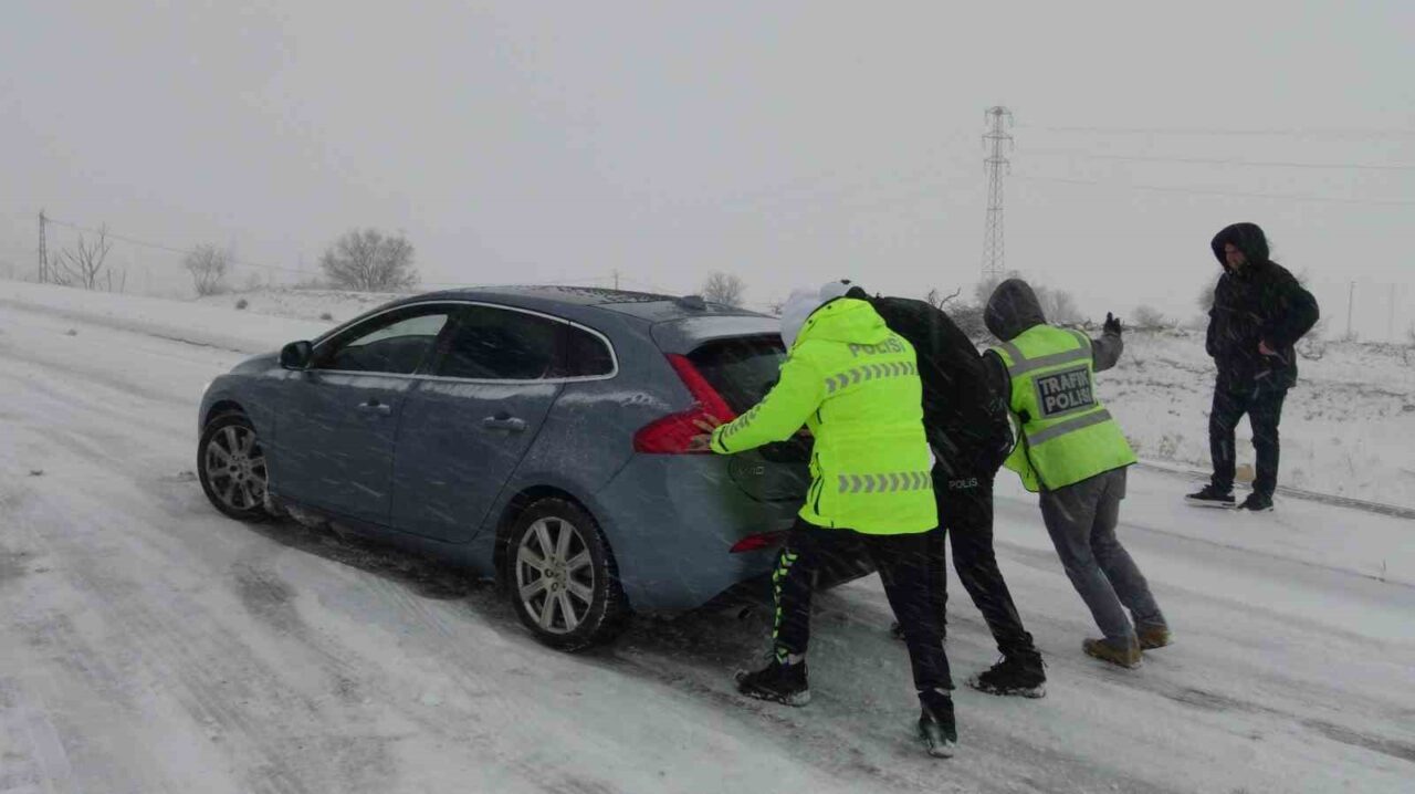 **Batman’ın Gercüş ilçesinde** yoğun kar yağışı ve buzlanma nedeniyle yolda kalan vatandaşların yardımına polis ekipleri yetişti. Bazı noktaları yöneten ekipler, diğer bazı yerlerde ise bizzat araçları iterek sürücülere yardımcı oldu.