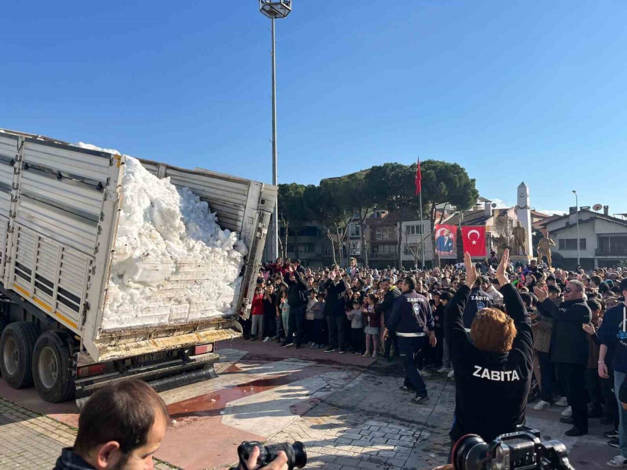 Germencik Belediye Başkanı Burak Zencirci, çocuklarla bir araya gelerek mutluluğa ortak oldu. Başkan Zencirci, “Bugün karne günü. Çocuklarımıza bir sözümüz vardı. ‘Germencik’e kar getireceğiz’ demiştik. Ödemiş Belediye Başkanımıza ulaştık, ‘Kaç kamyon istiyorsan gönder kardeşim’ dedi. Onun da desteğiyle Germencik ve Ortaklar’da üç kamyon karı çocuklarımızla buluşturduk. Onların yüzündeki sevinç her şeye değer” ifadelerini kullandı.