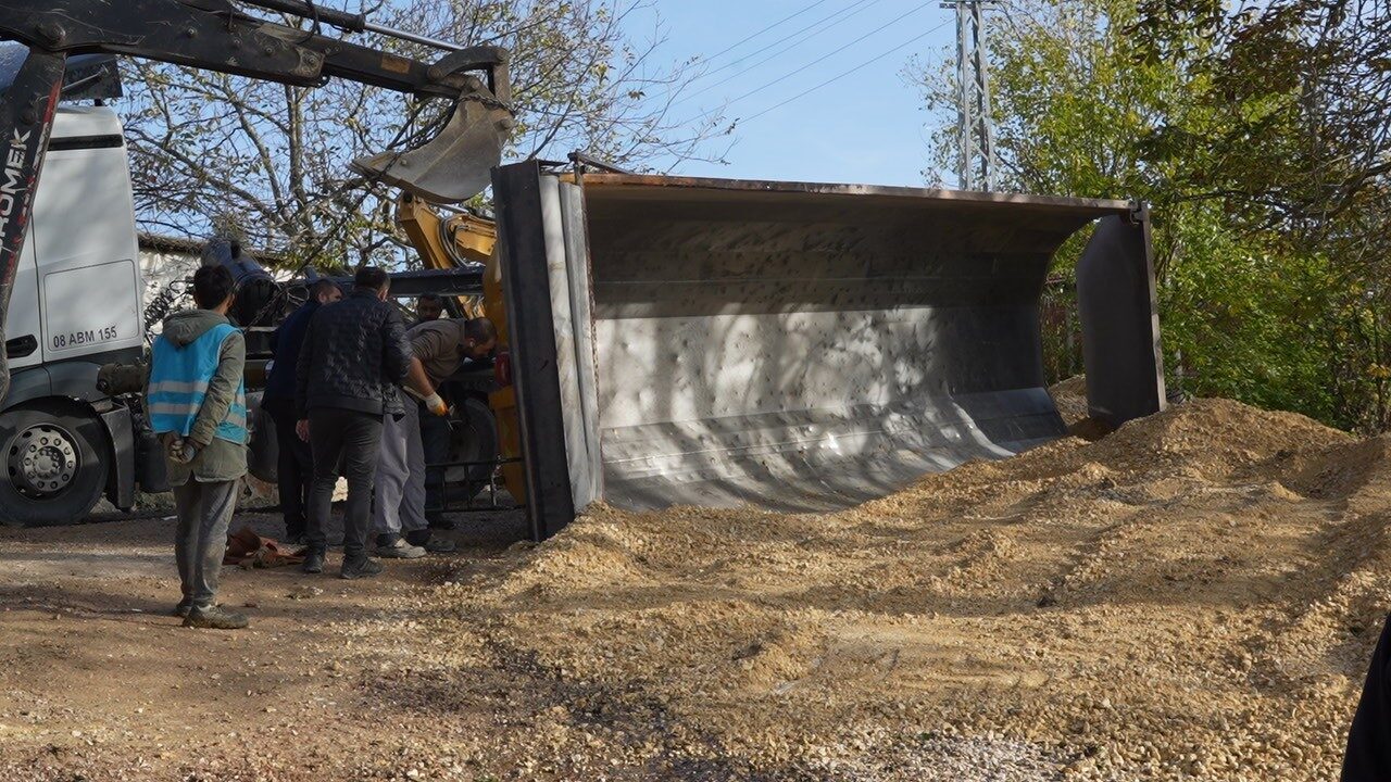 KOCAELİ’NİN İZMİT İLÇESİNDE MICIR YÜKLÜ KAMYONUN DAMPERİNİN DEVRİLMESİ SONUCU PANİKLEYEN SÜRÜCÜ FENALIK GEÇİRDİ.
