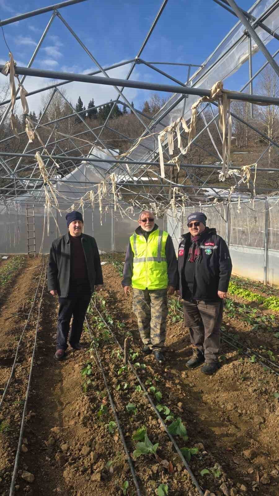 Fırtına nedeniyle çok sayıda sera zarar görürken, yayla evlerinin çatıları da yerinden söküldü.