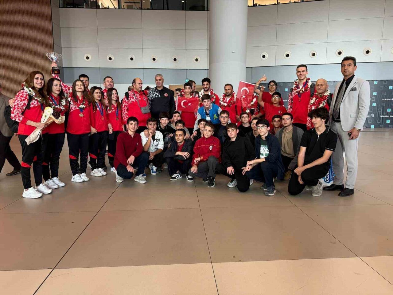 Milli takım, Helsinki’den kalkan Türk Hava Yolları uçağıyla İstanbul Havalimanı’na iniş yaptı. Dış hatlar terminalinde karşılanan kafileyi, Gençlik ve Spor İl Müdürlüğü yetkilileri, Federasyon Başkanı Ayhan Yıldırım, sporcuların aileleri ve genç sporcular coşkuyla karşıladı. Şampiyon ekip, dışarı çıktıklarında Türk bayrakları ve çelenklerle onurlandırıldı.