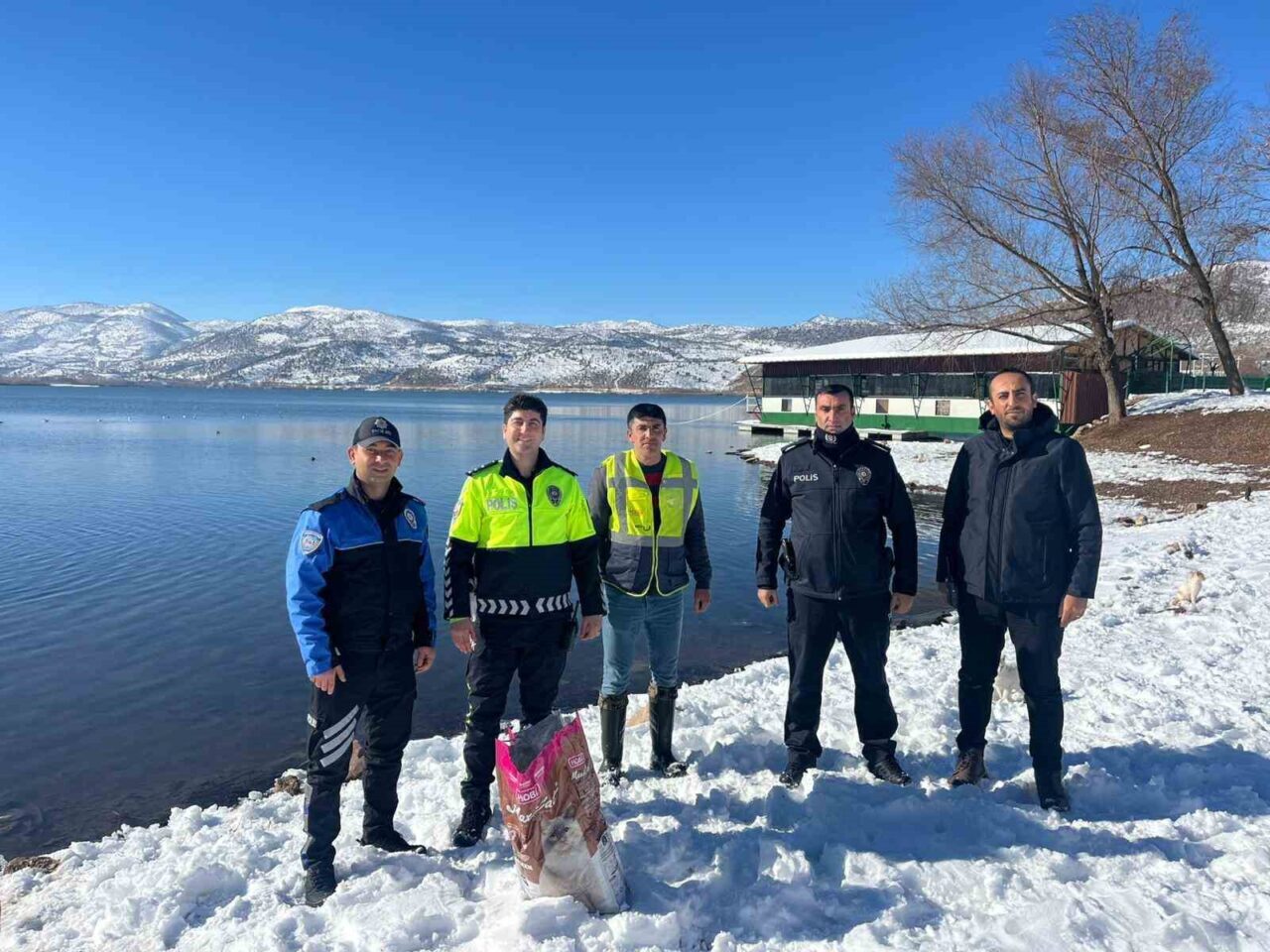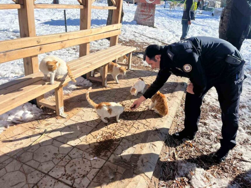 Adıyaman’ın Gölbaşı İlçe Emniyet Müdürlüğü ekipleri, sokak hayvanları için mama ve yem bıraktı.