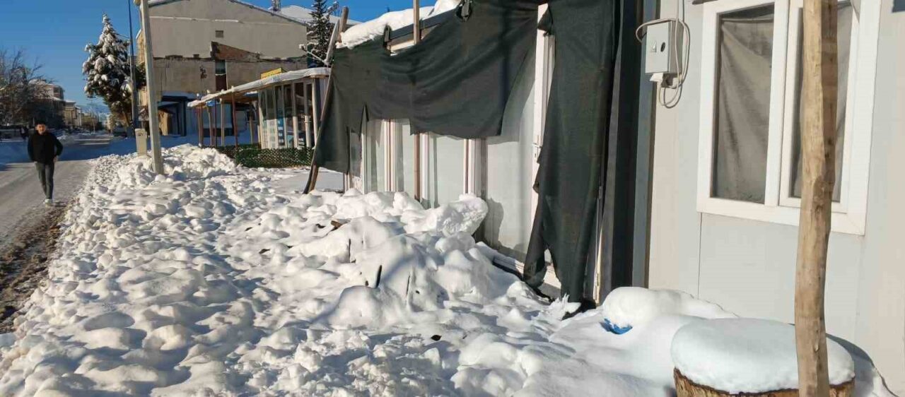 İlçe merkezinde kar kalınlığının artmasıyla birlikte, özellikle iş yerlerinin önündeki çadır tipi gölgelikler ve tenteler karın ağırlığına dayanamayarak çökmeye başladı. Gece saatlerinde şiddetini artıran yağış sonrası, ilçede birçok noktada çadır gölgelik olarak adlandırılan yapılar kar yükünü kaldıramadı. Aniden çöken yapılar nedeniyle şans eseri yaralanan kimse olmazken, gölgeliklerin altında bulunan eşyalar ve araçlar maddi hasar gördü.