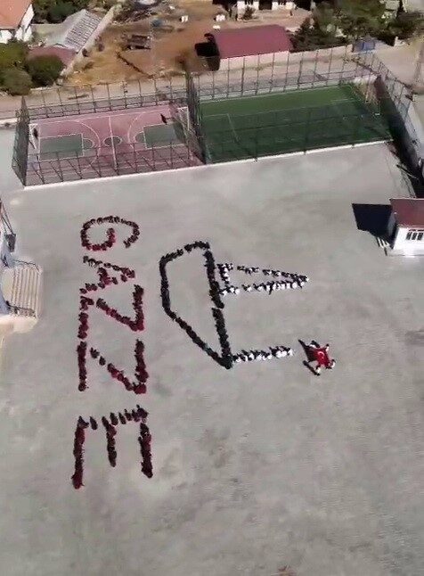 Adıyaman’ın Gölbaşı ilçesine bağlı Belören beldesinde, İmam Hatip Ortaokulu öğrencileri ilginç bir etkinlik düzenleyerek, bedenleriyle ‘Gazze’ yazıp Sumud Gemisi’nin dansını sergiledi.